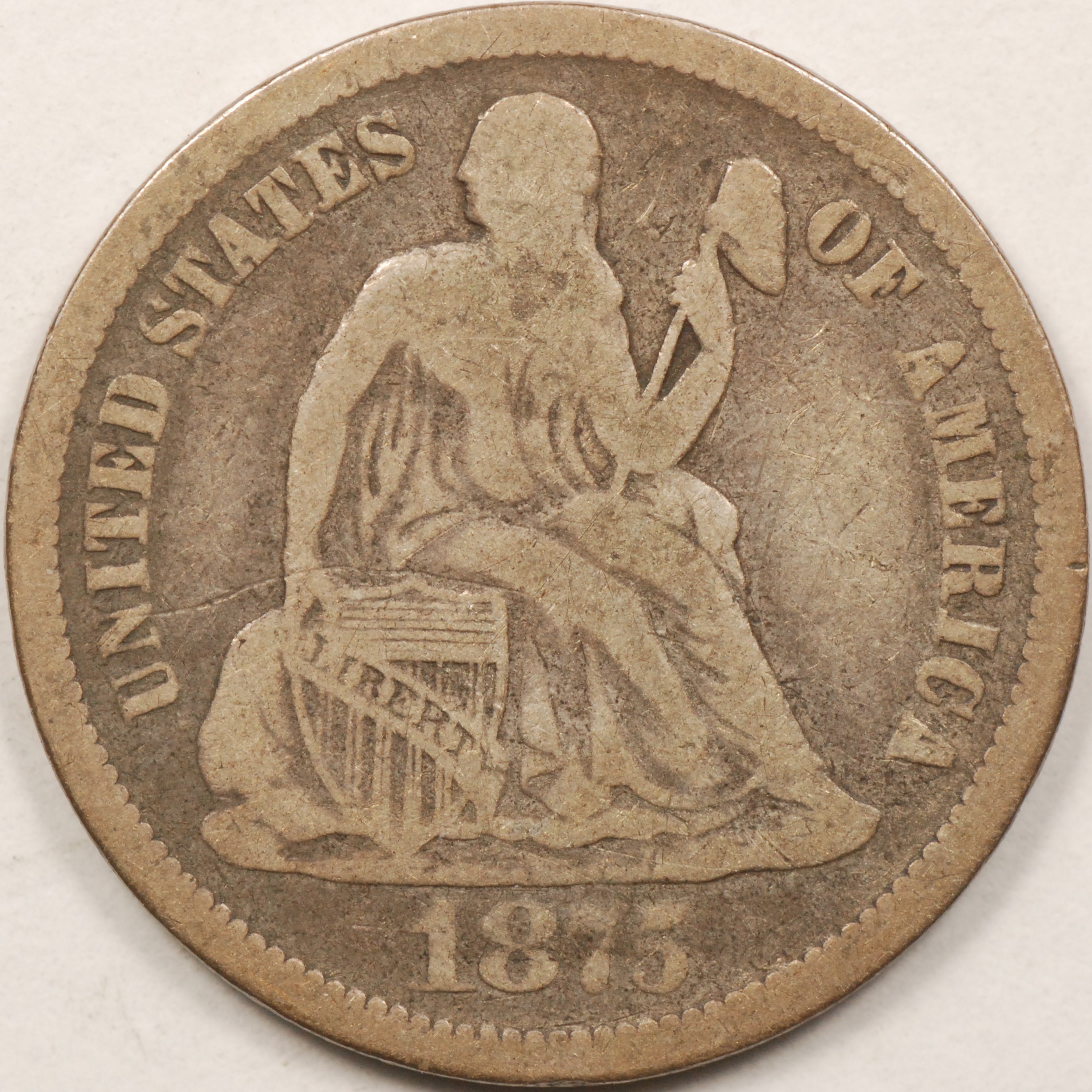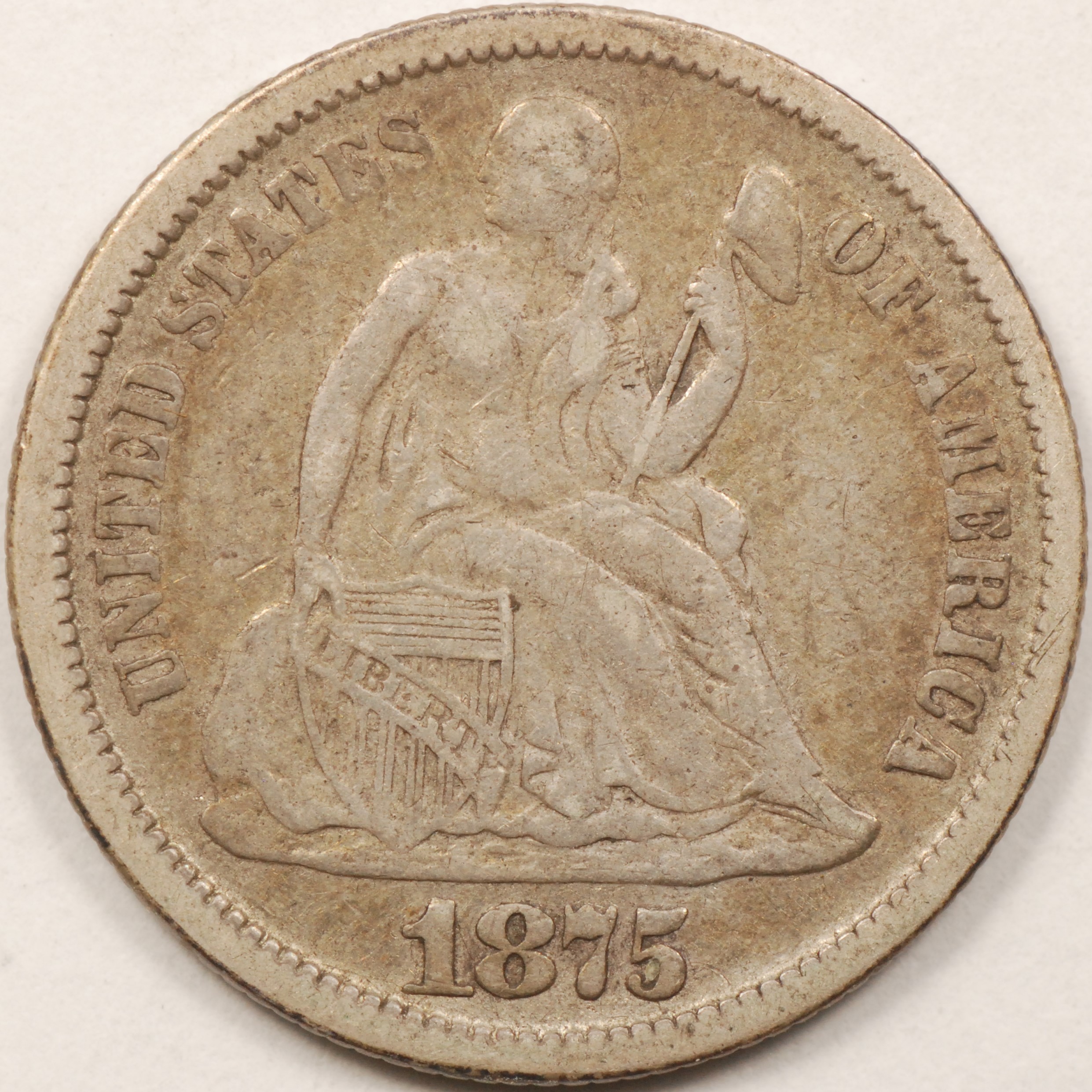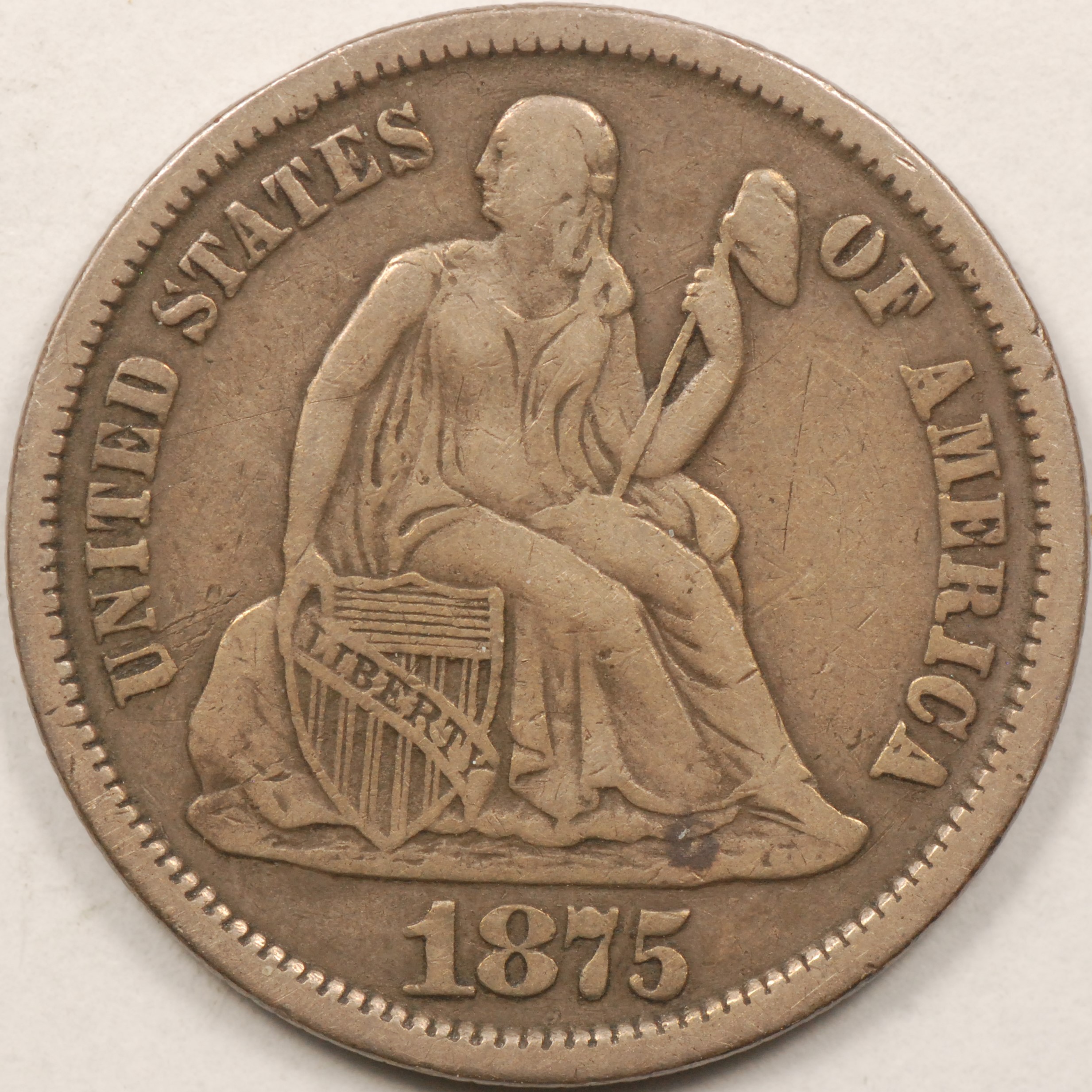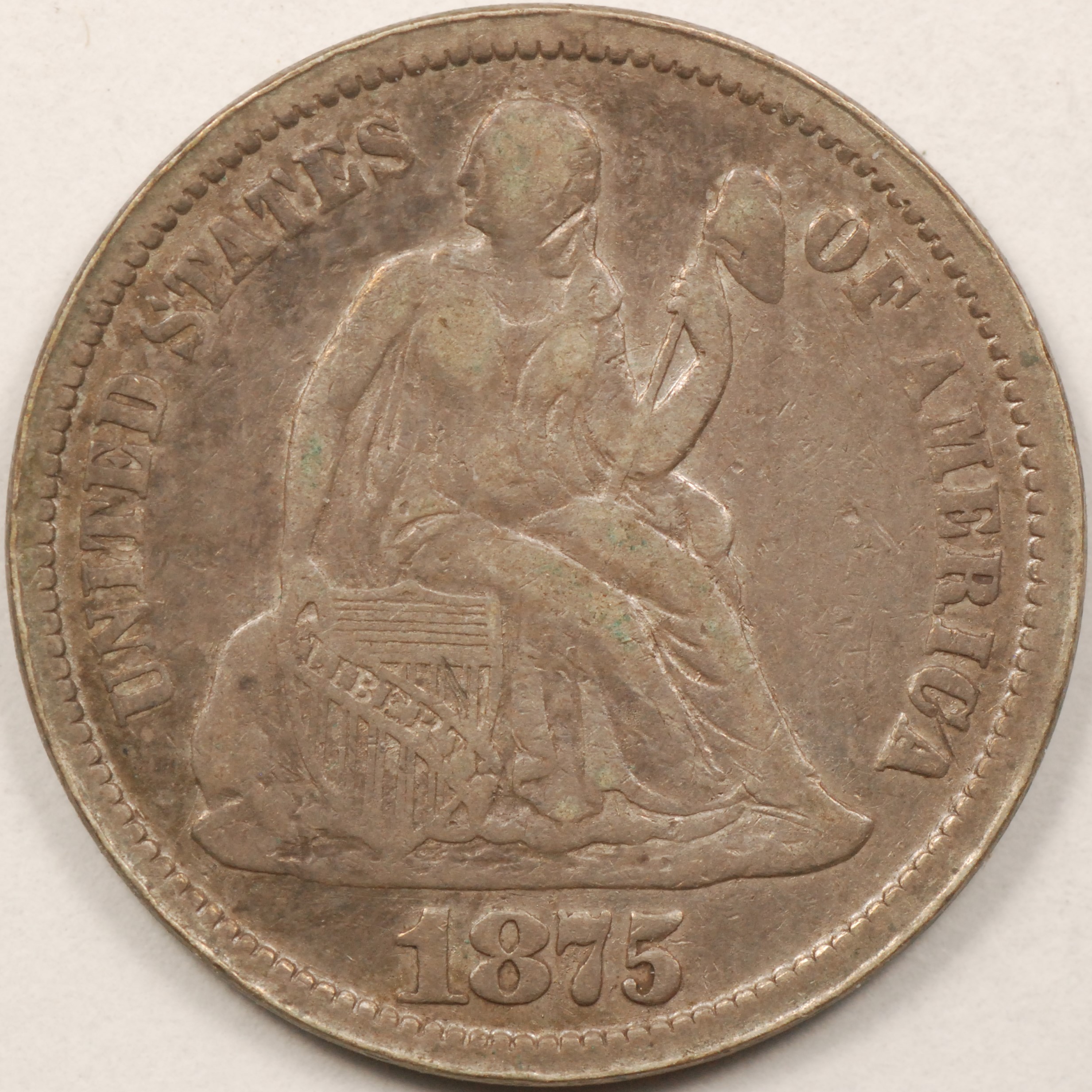 96750 R | 1875 | Seated Liberty Dime | Arrows Removed | Fine | $19.00 |