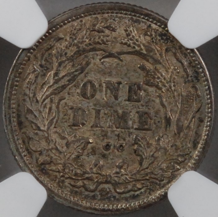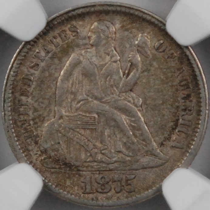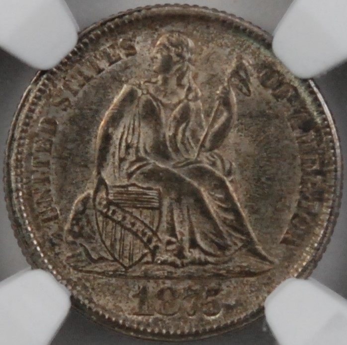| 370219-005 H S | 1875 | Seated Liberty Dime | Original Toning NGC Certificate 370219-005 |