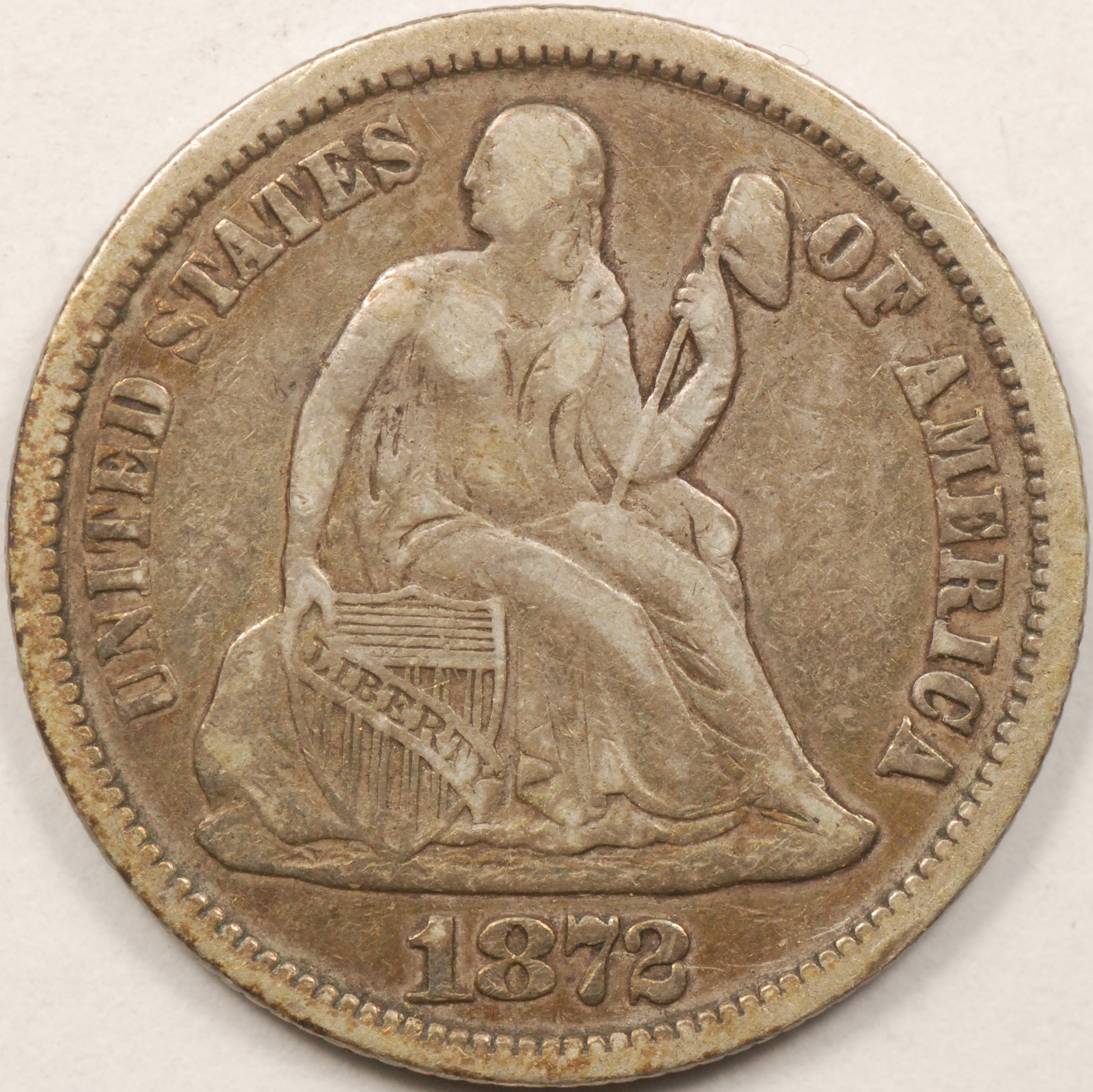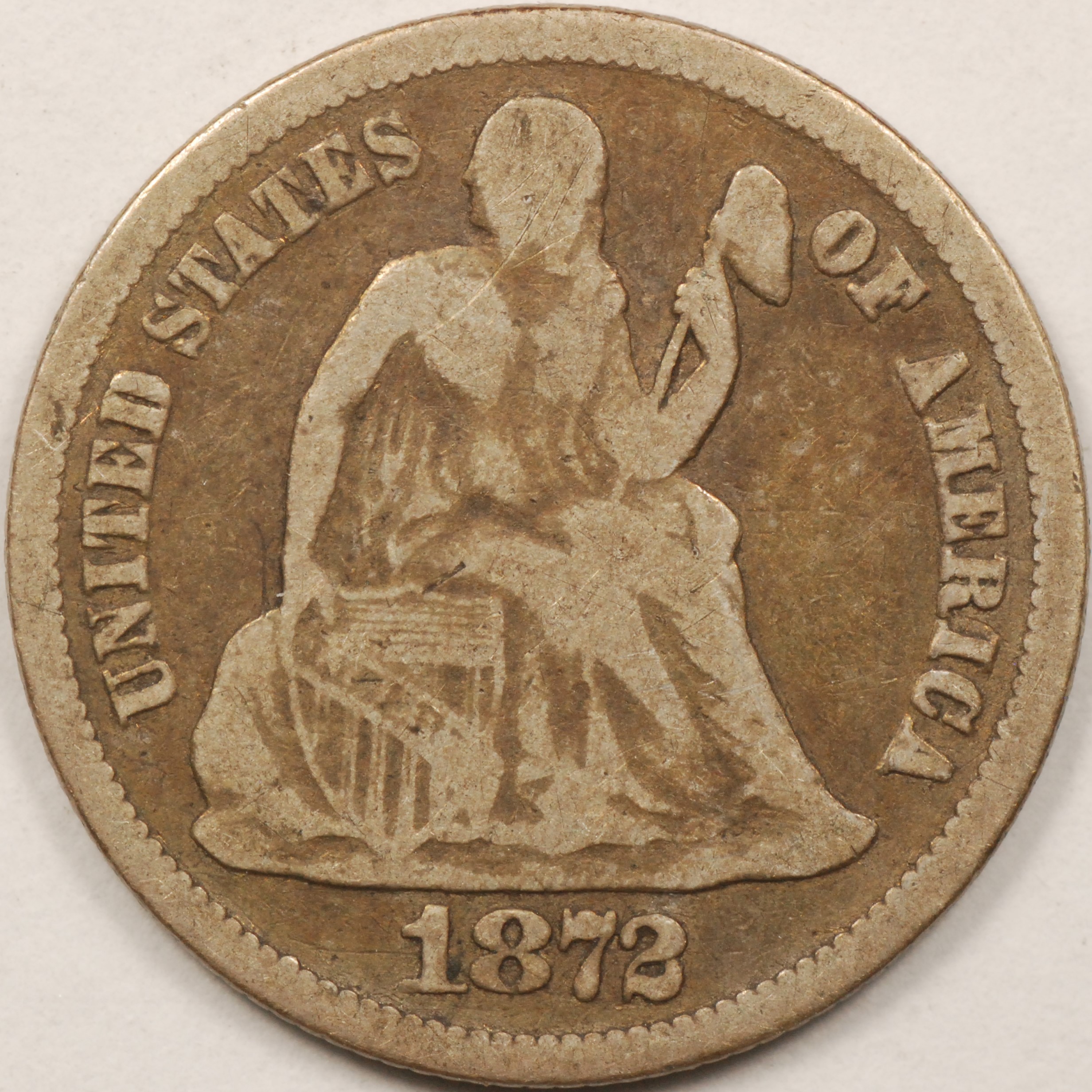 | 91648 R | 1872 | Seated Liberty Dime | Very Good | $18.00 | |||
