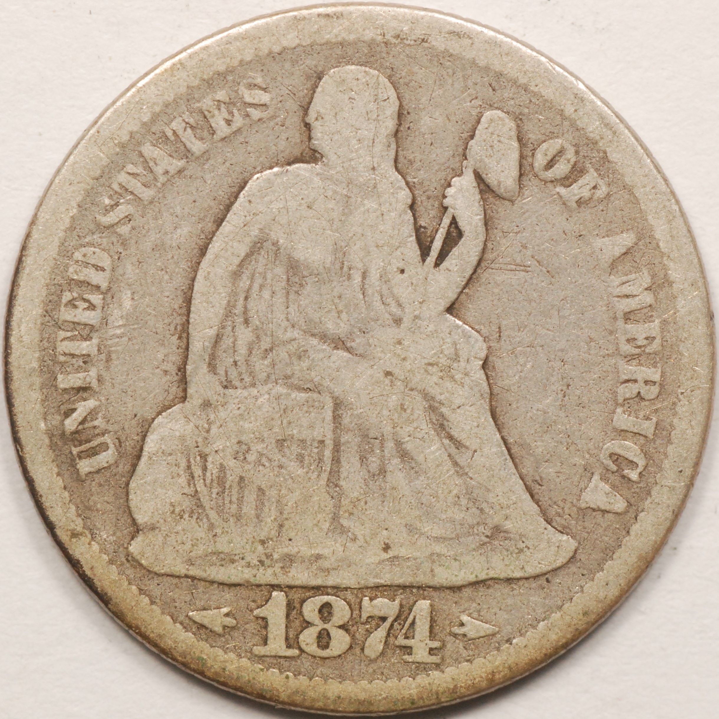 | 85337 R | 1874 | Seated Liberty Dime | Very Good | $23.00 | |||