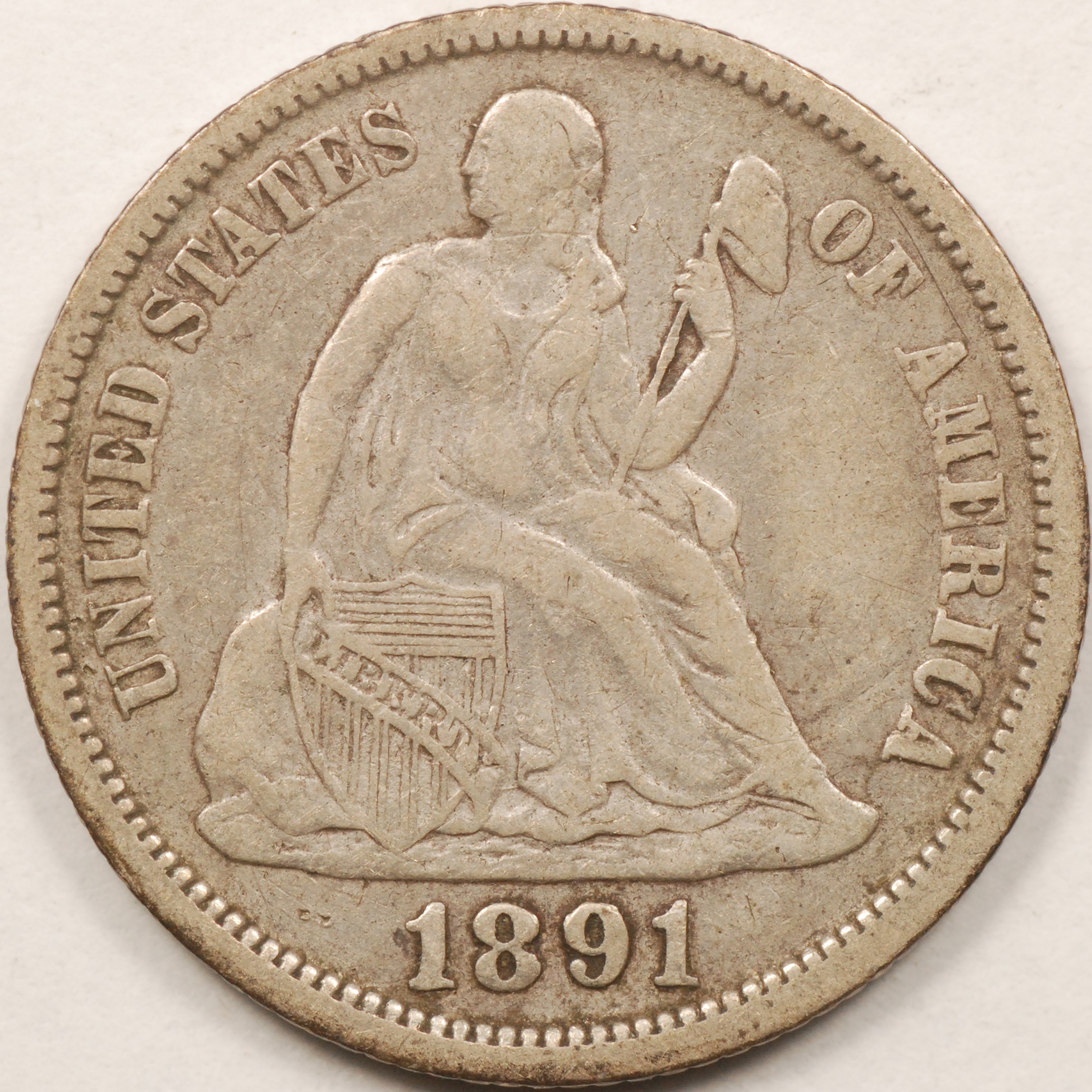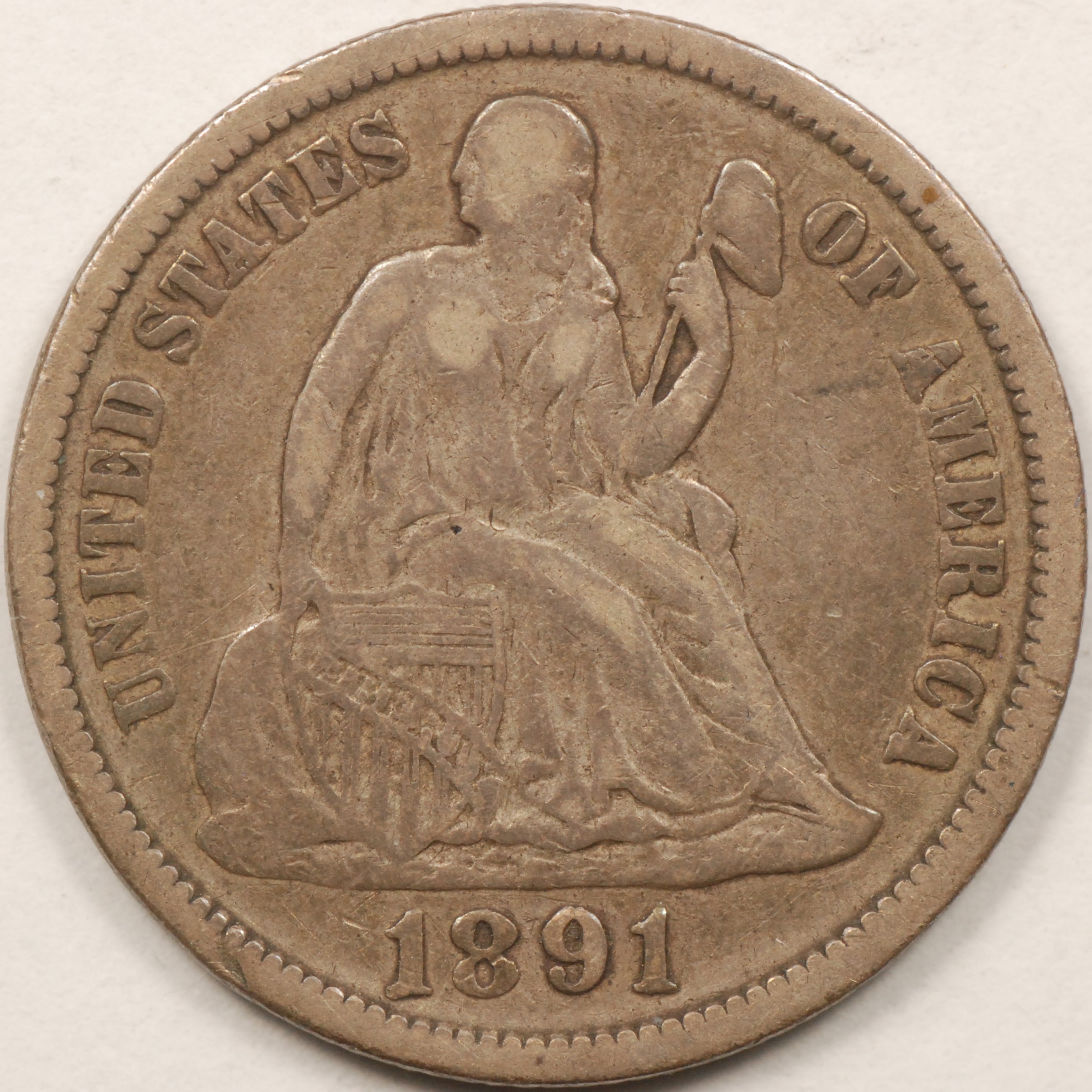 | 56247 R | 1891 | Seated Liberty Dime | Fine | $19.00 | |||