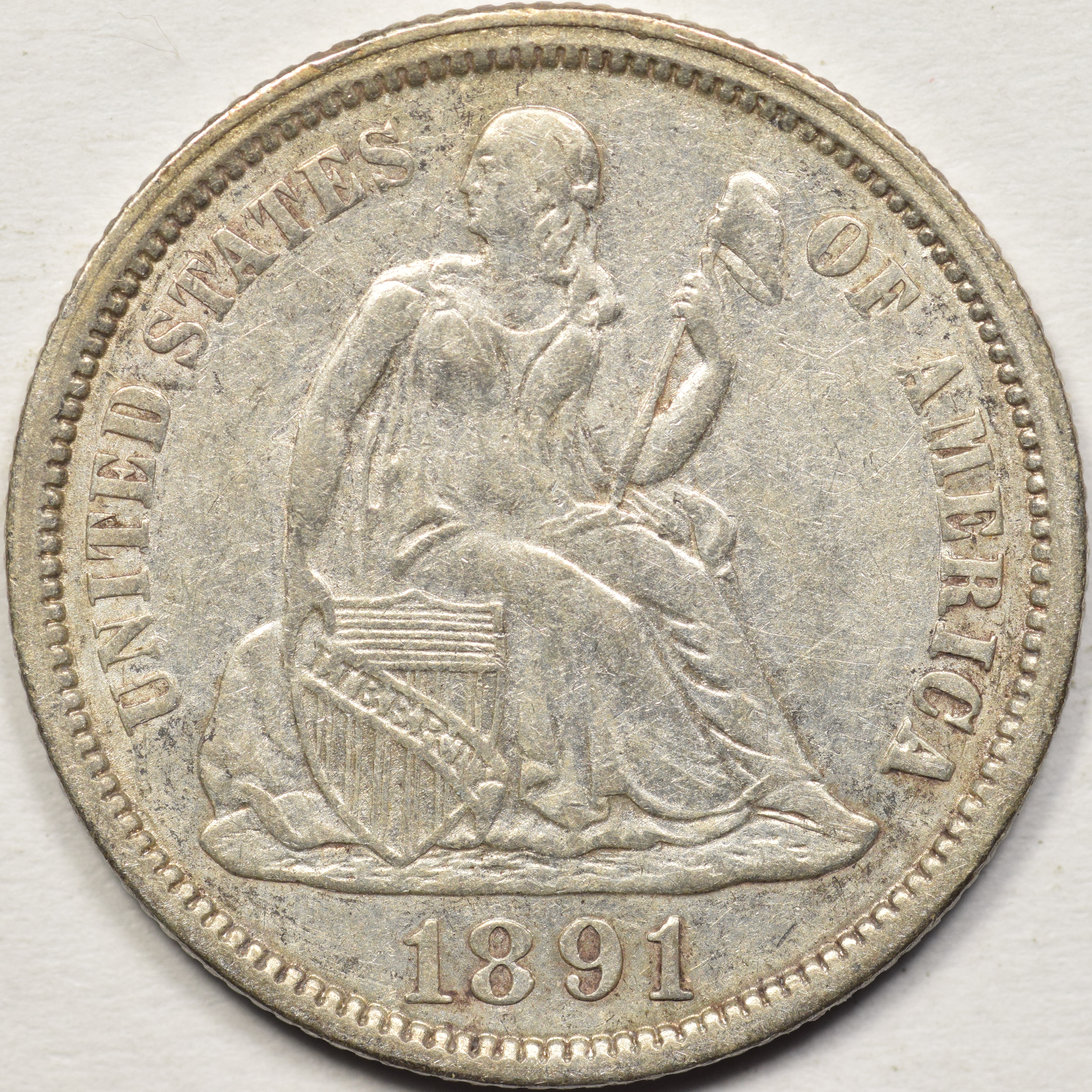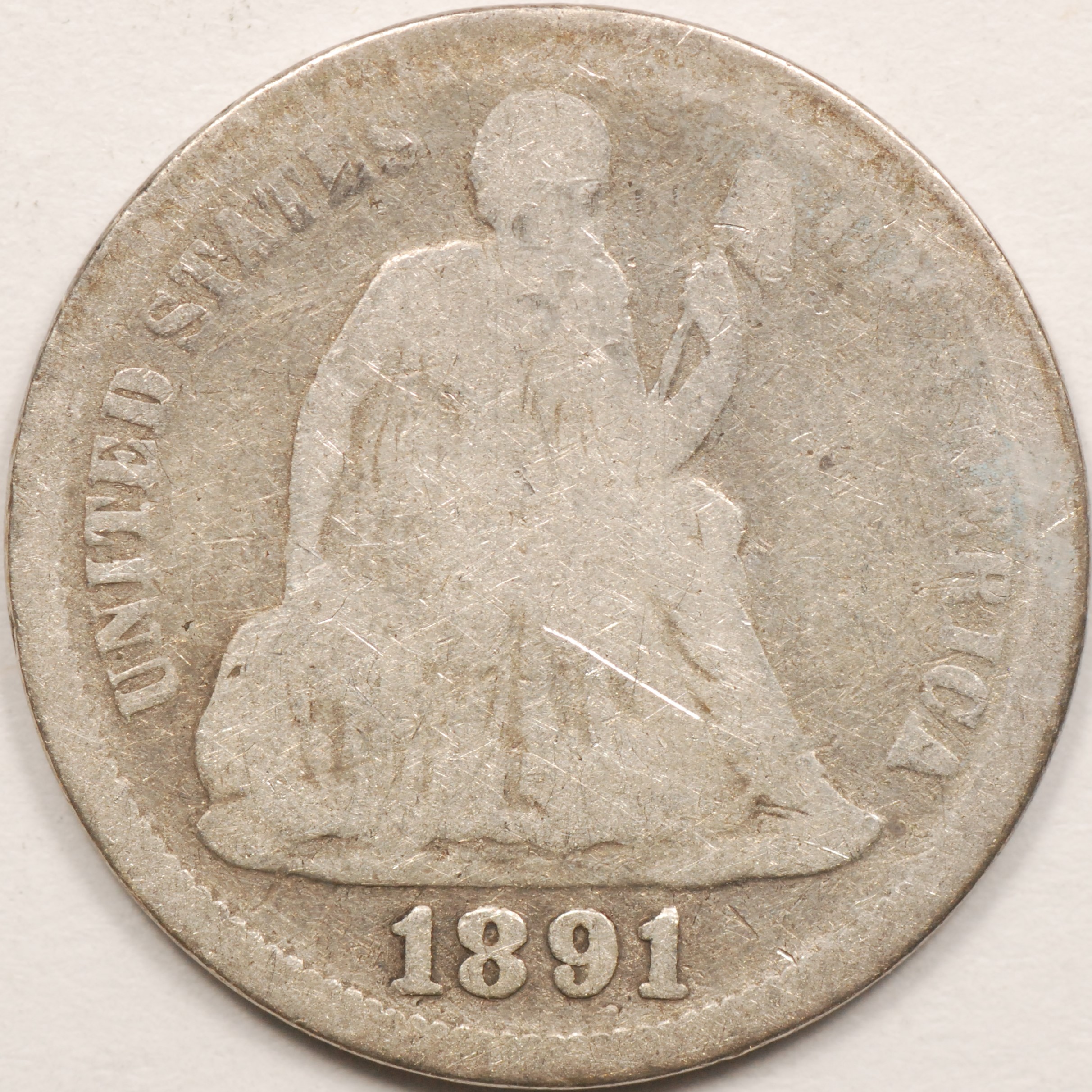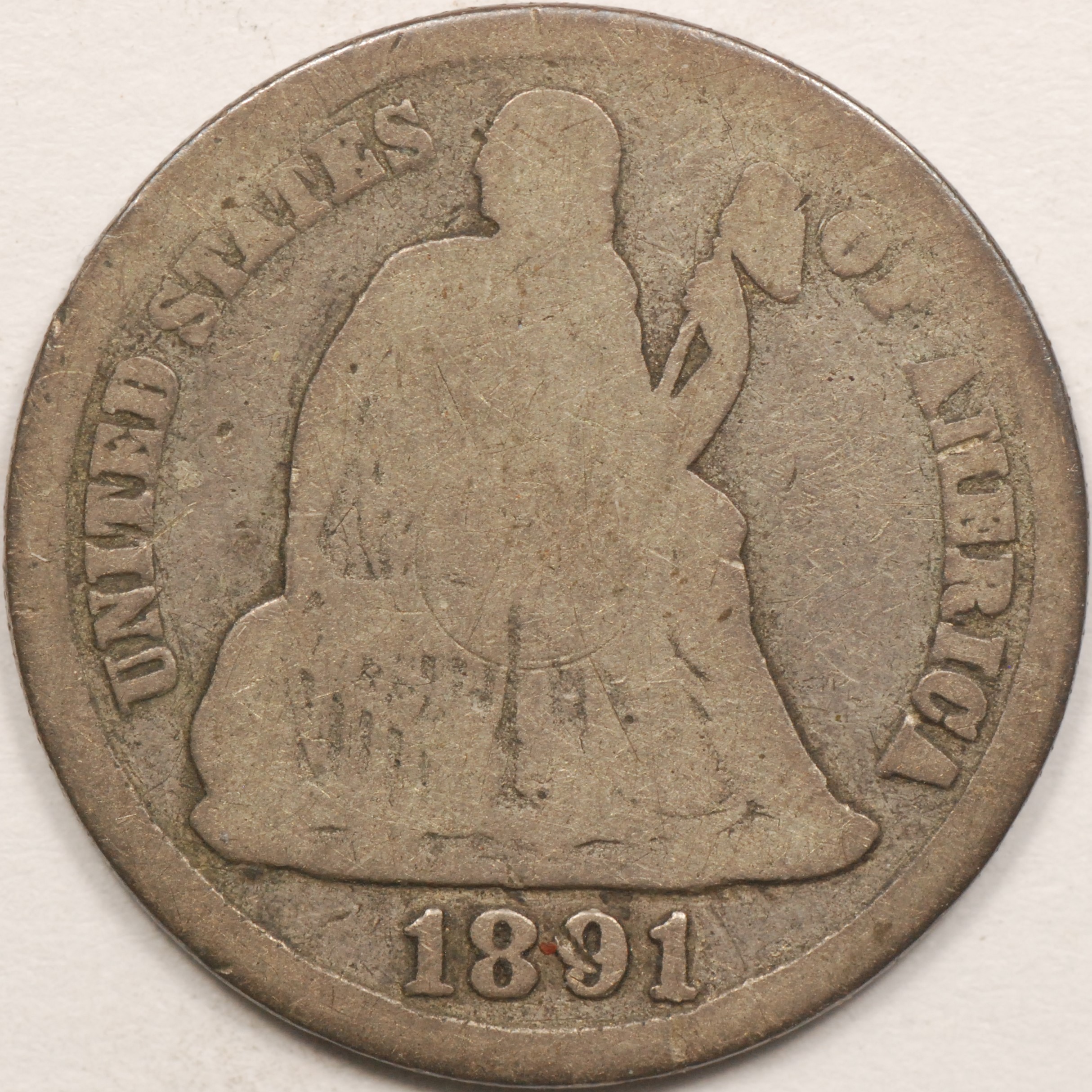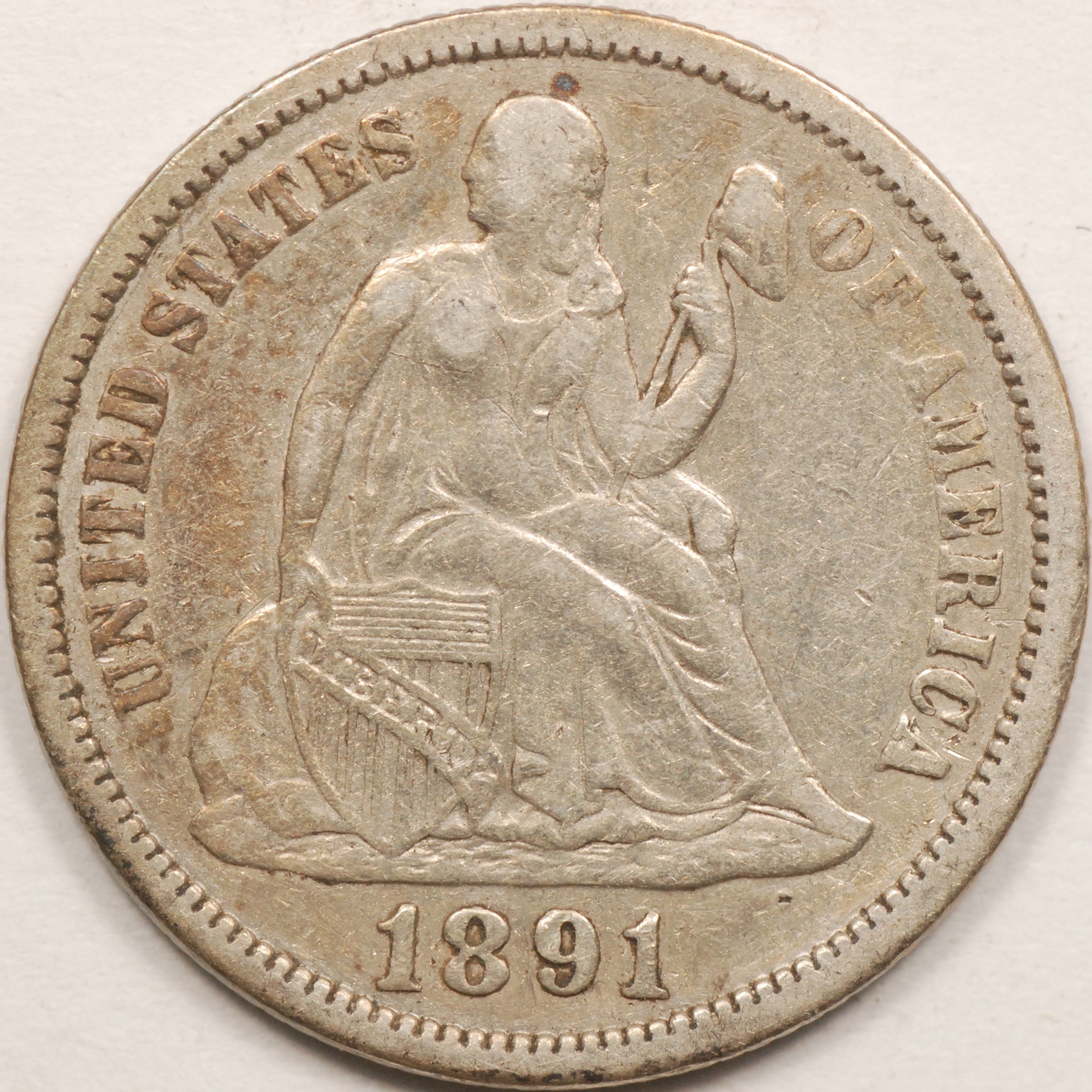 | 92312 R | 1891 | Seated Liberty Dime | Fine | $19.00 | |||