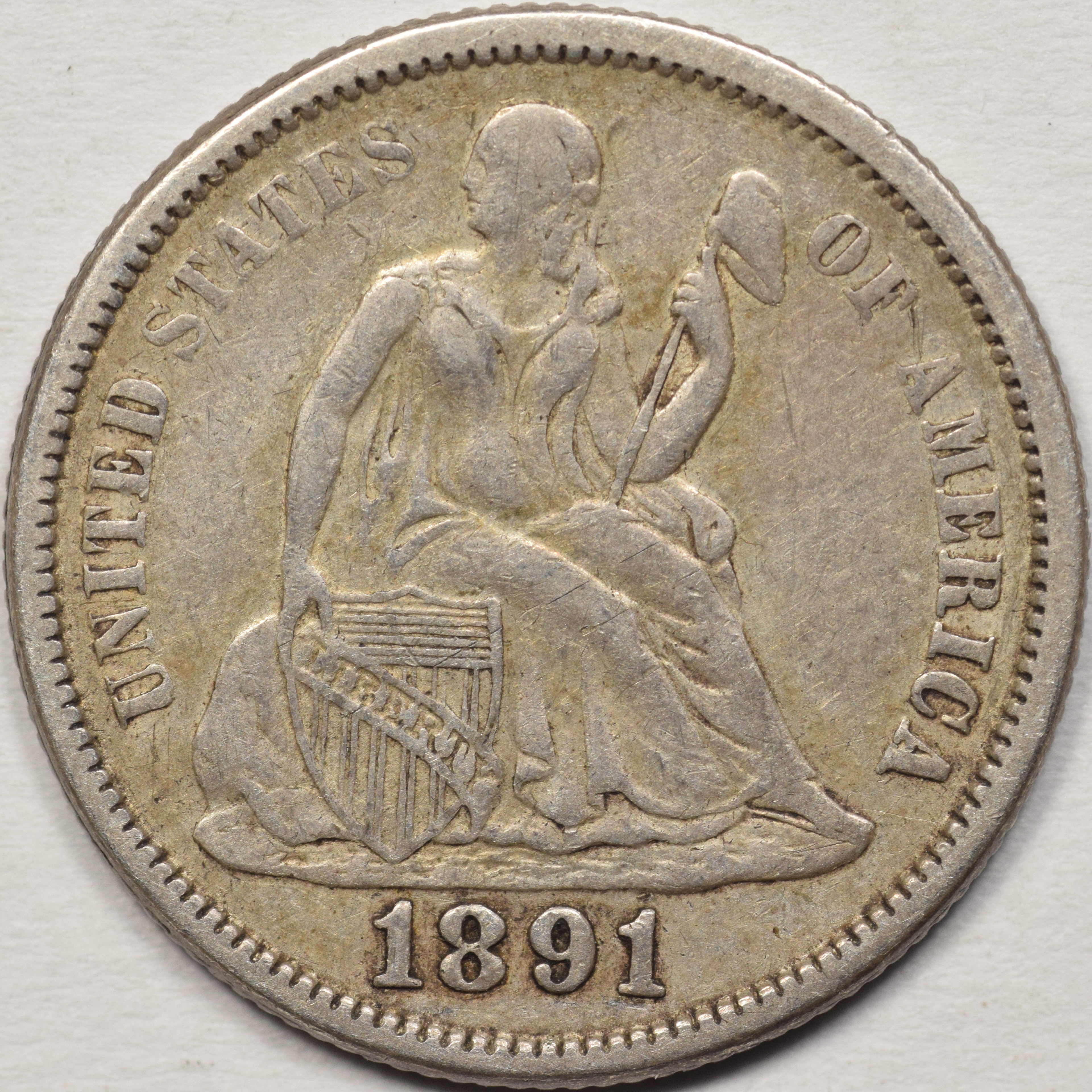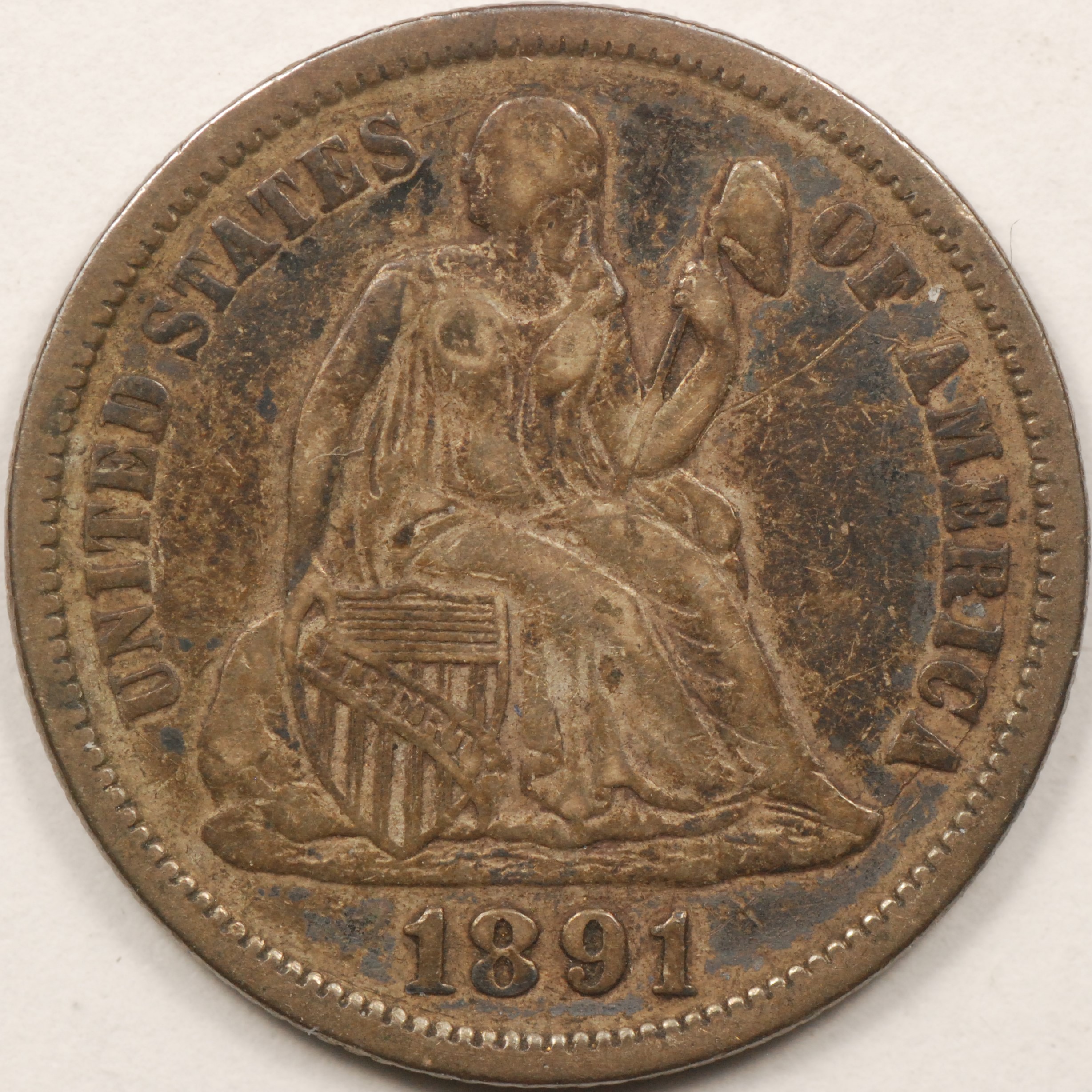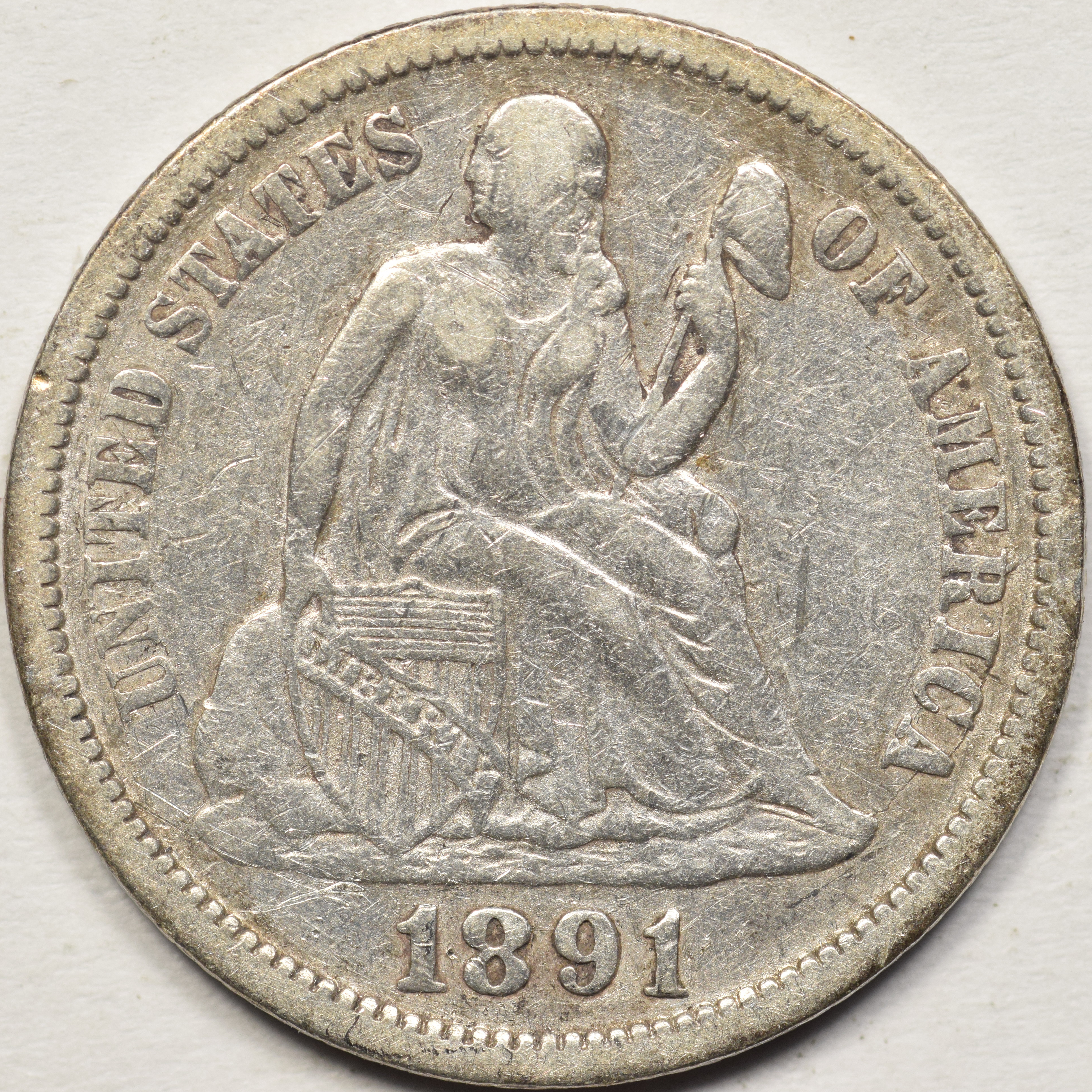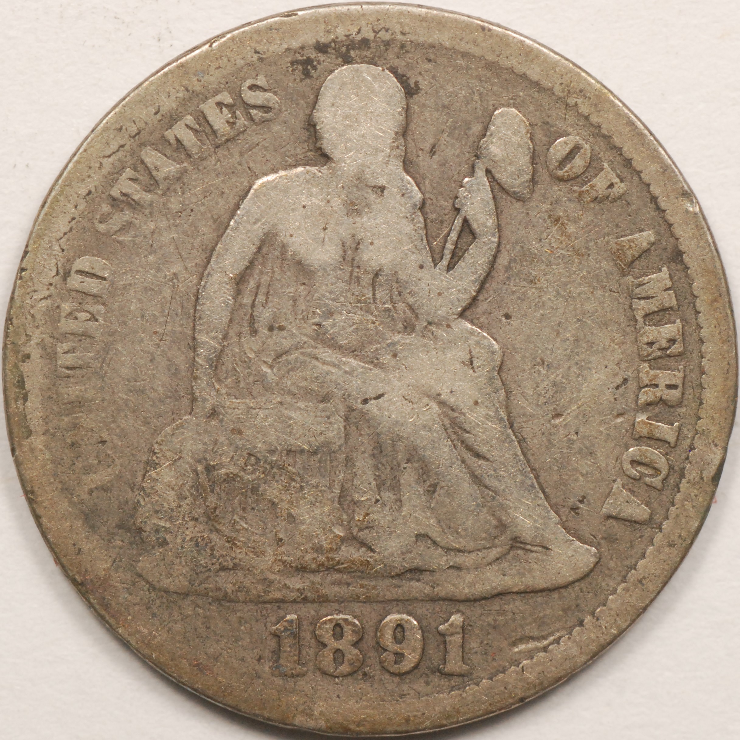 | 92312 R | 1891 | Seated Liberty Dime | Fine | $19.00 | |||