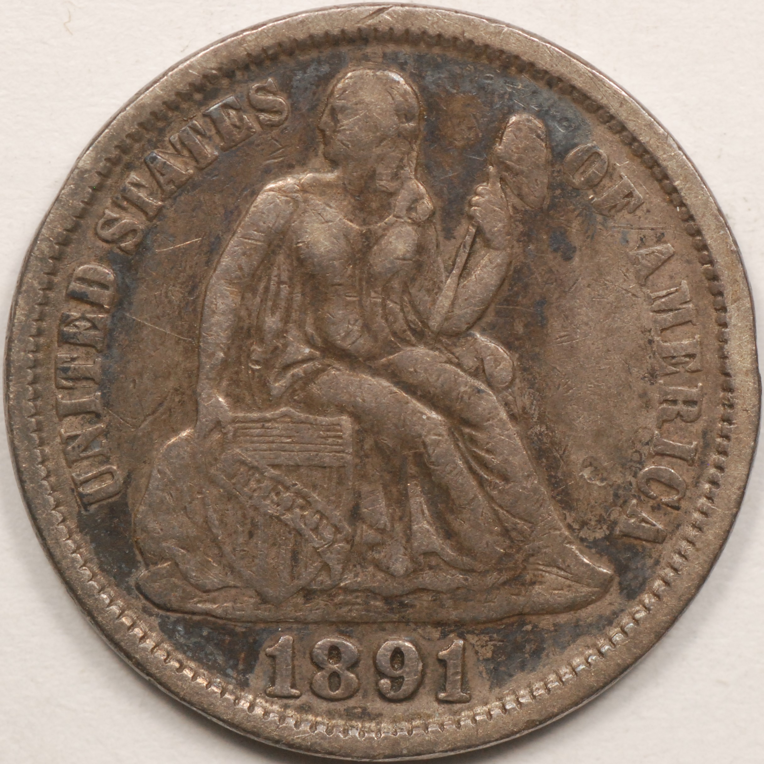 | 68713 R | 1891 | Seated Liberty Dime | Very Fine | $24.00 | |||