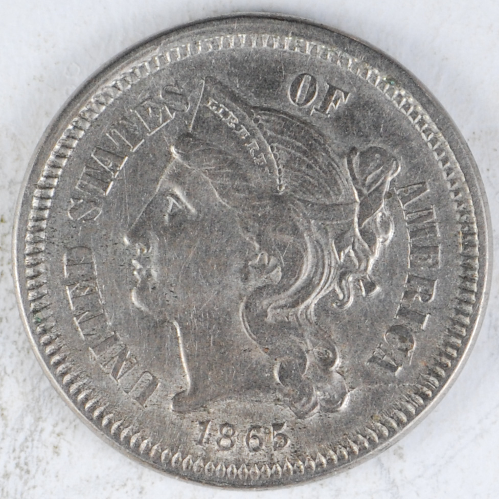 | 36123 R | 1865 | Copper-Nickel Three Cents | Very Fine | $28.00 | |||