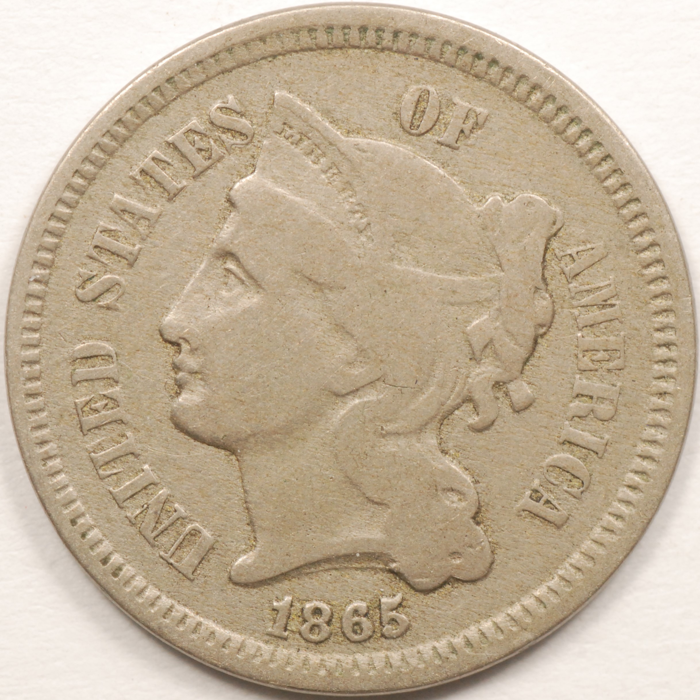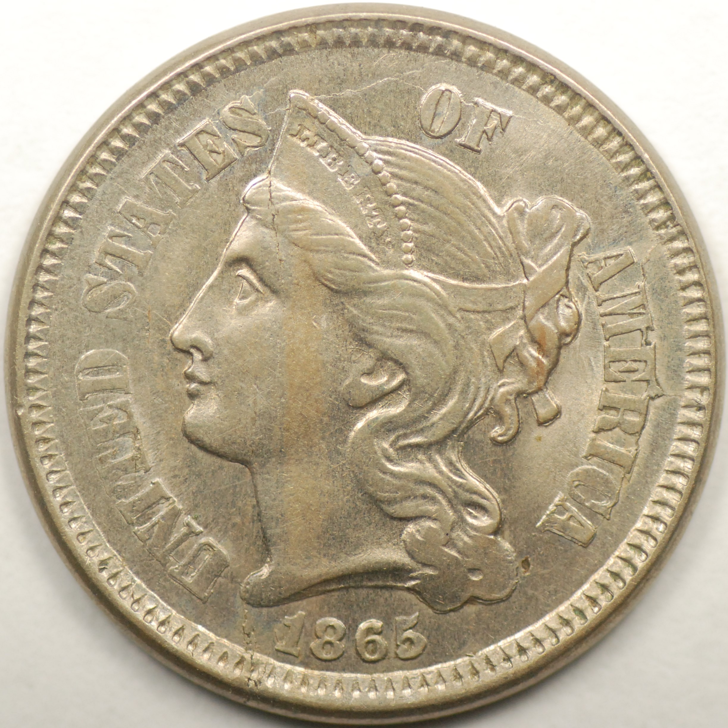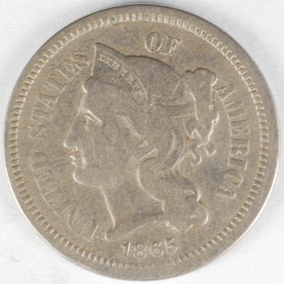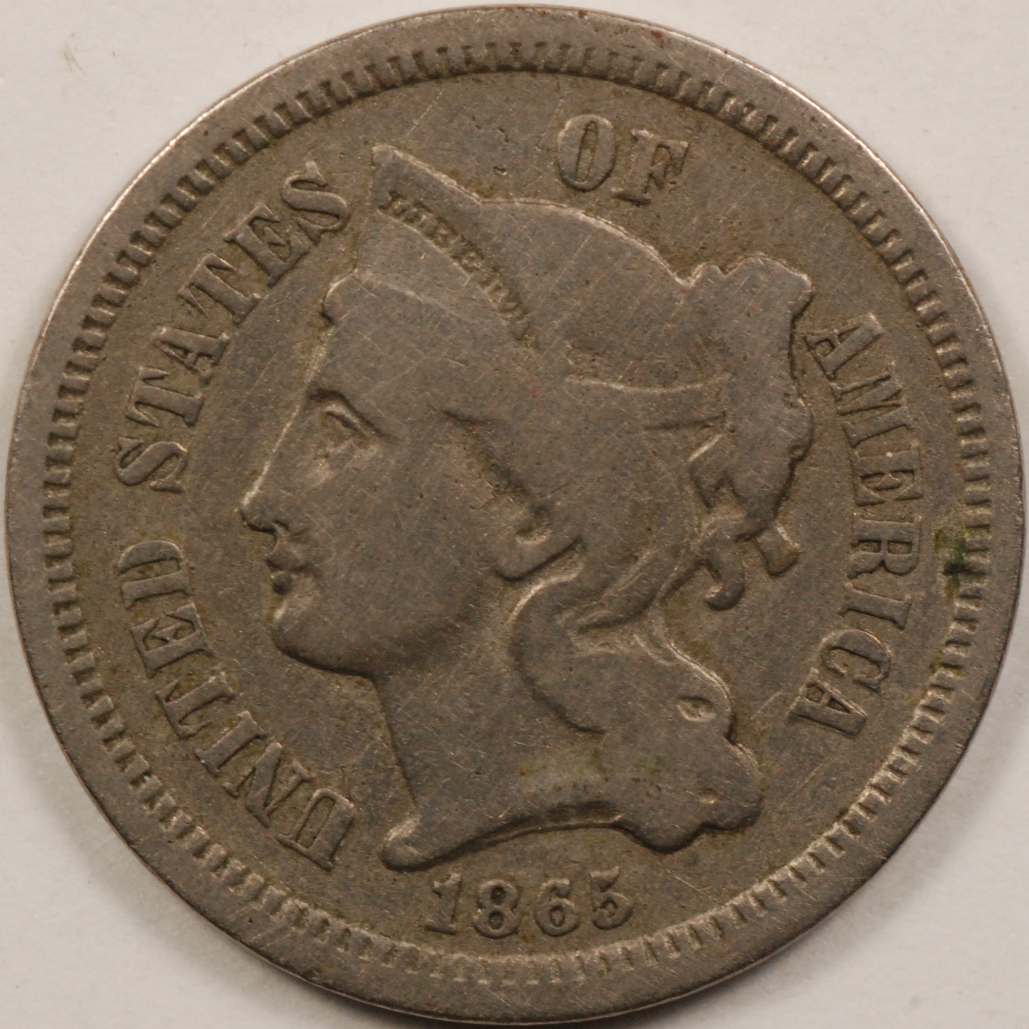 | 56113 R | 1865 | Copper-Nickel Three Cents | Very Fine | $28.00 | |||