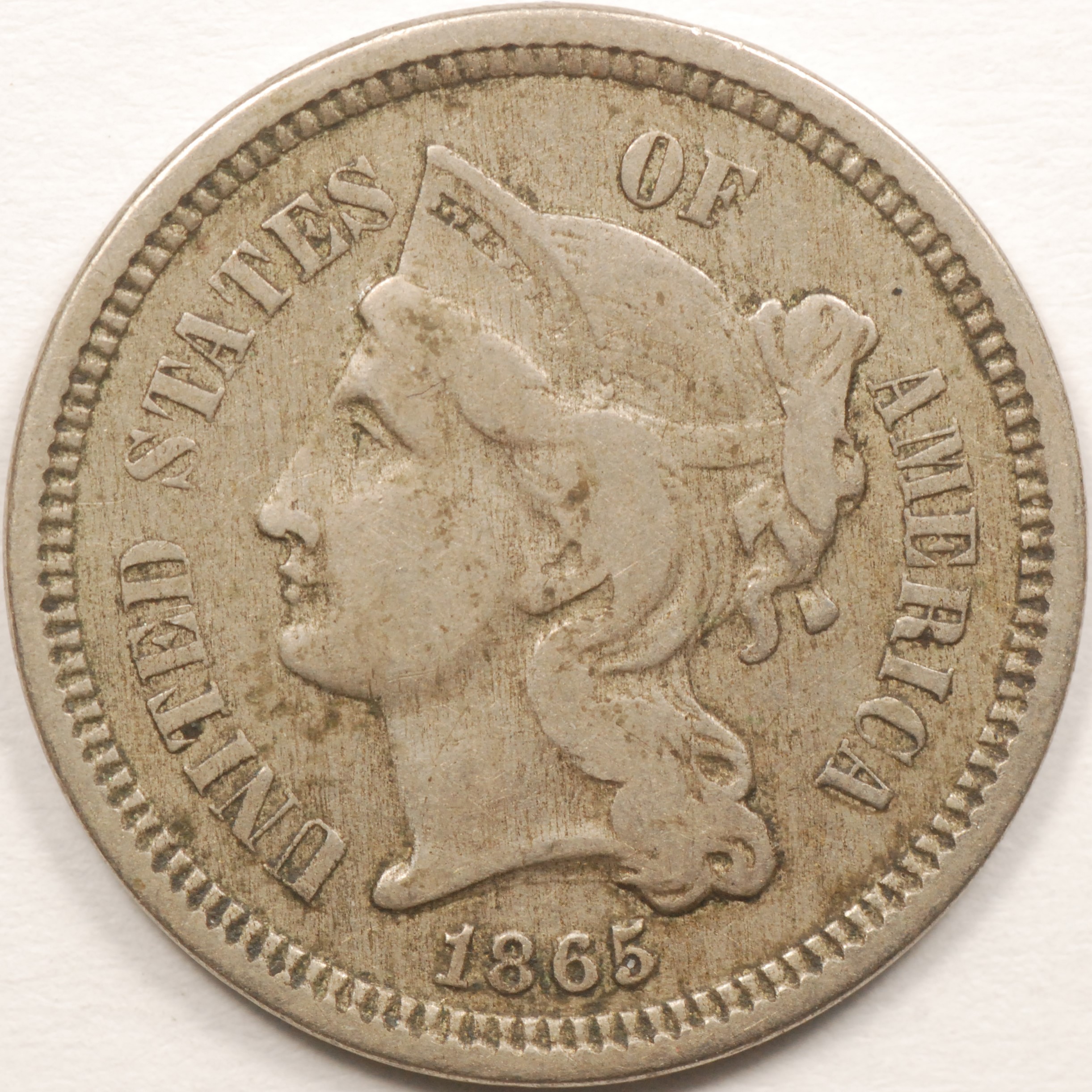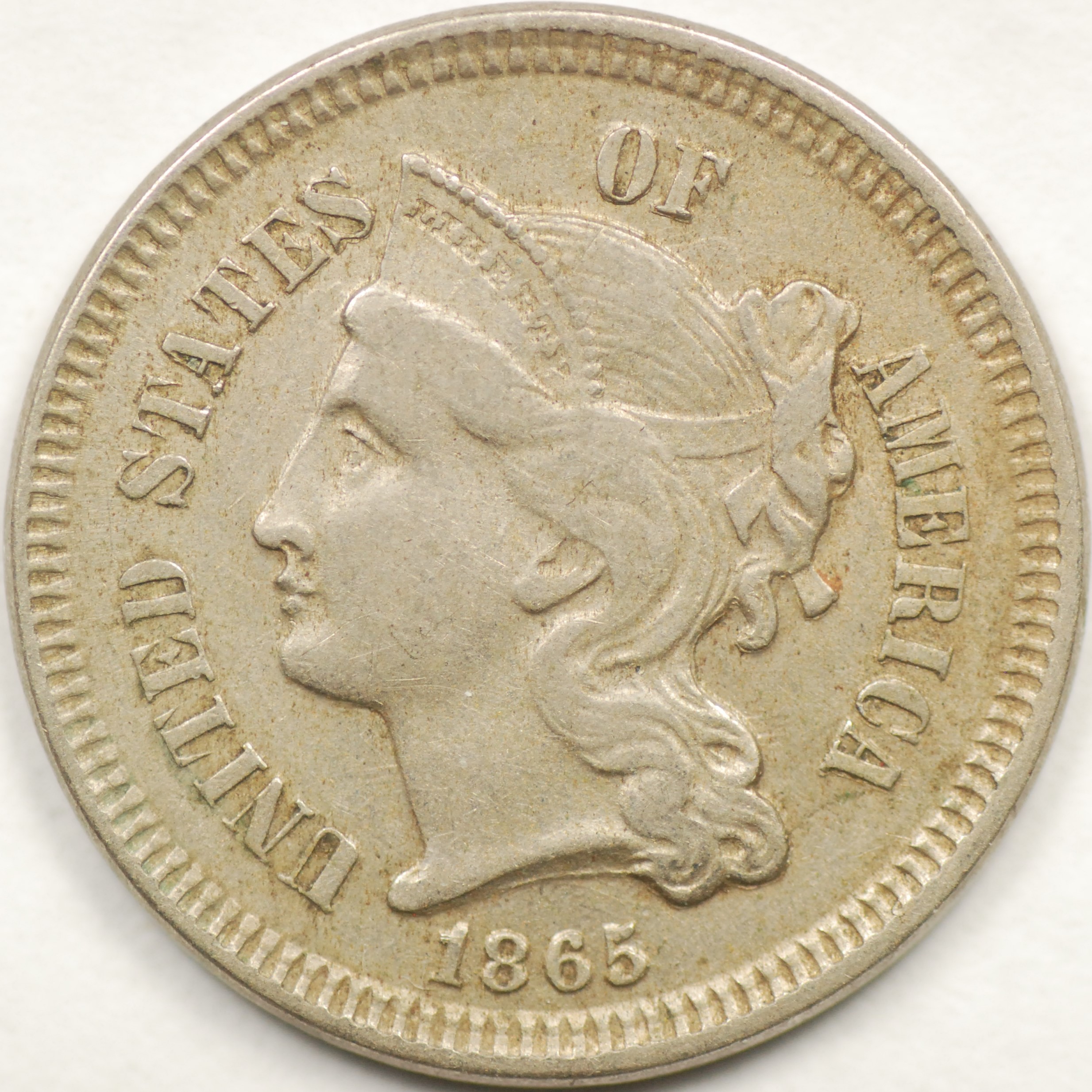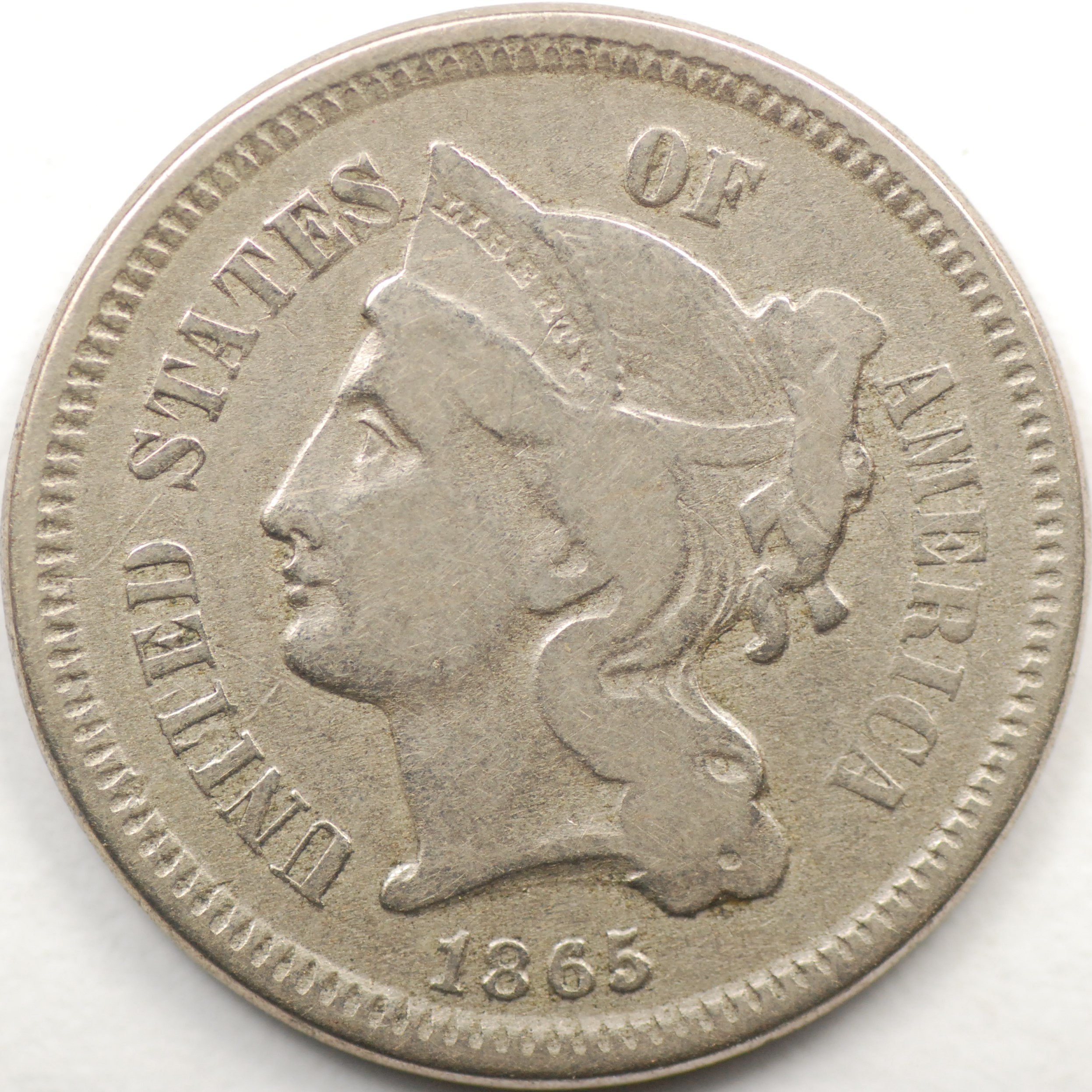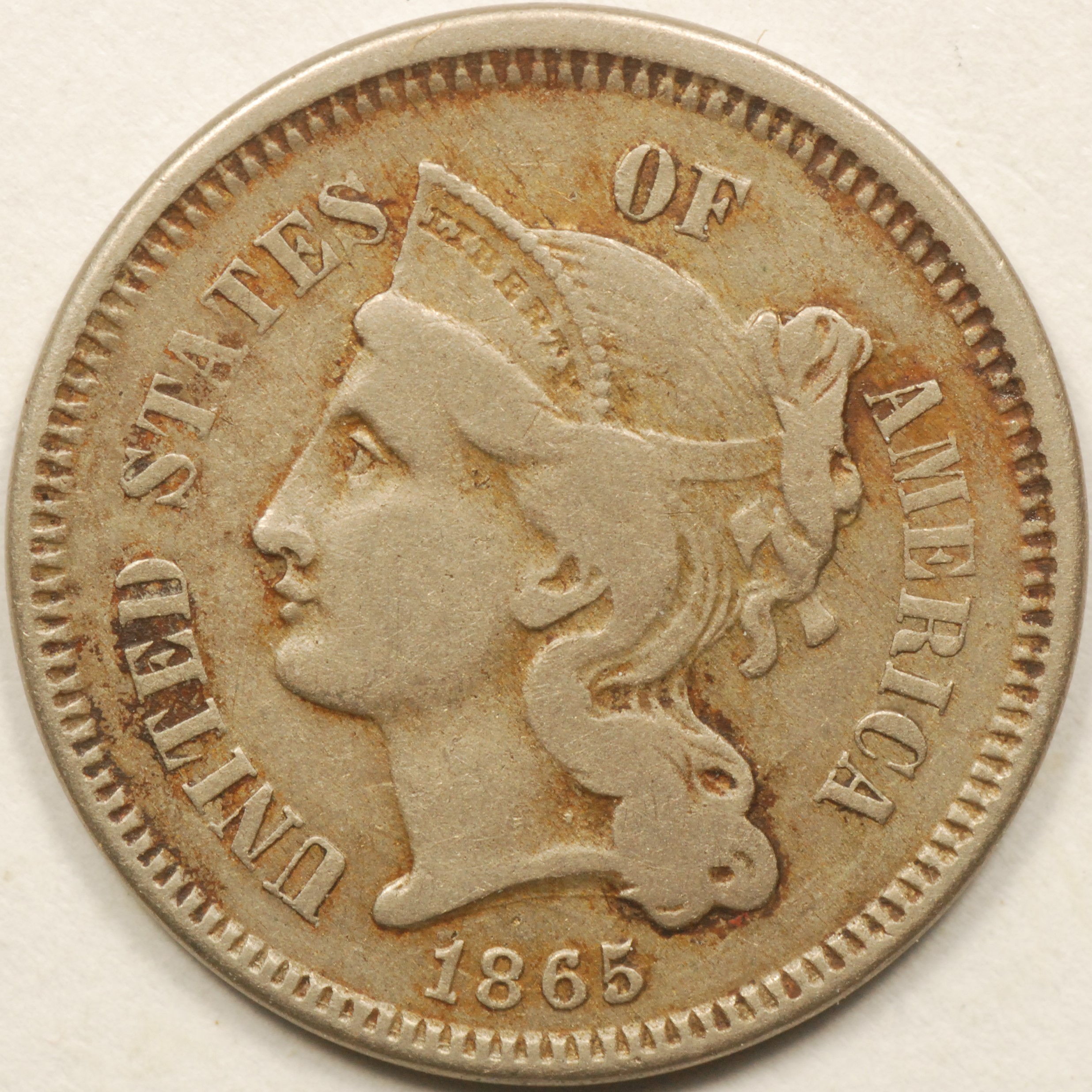 | 57217 R | 1865 | Copper-Nickel Three Cents | Very Fine | $28.00 | |||