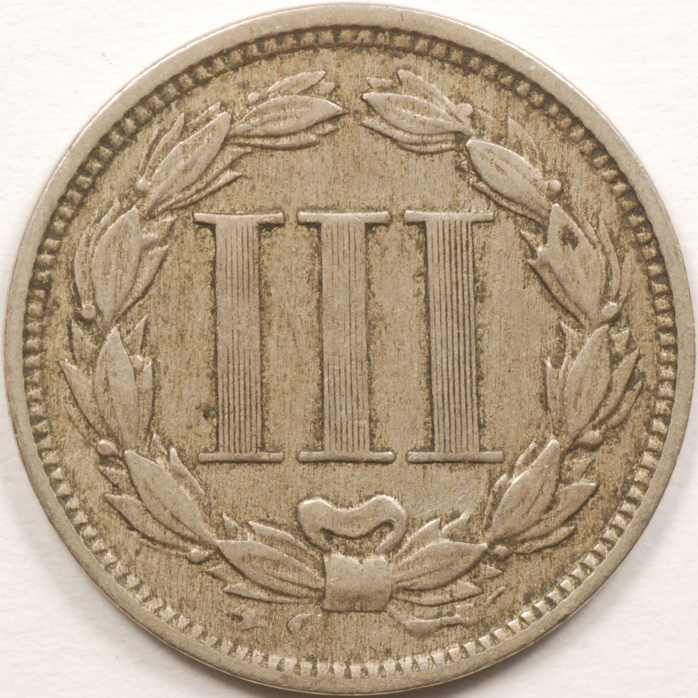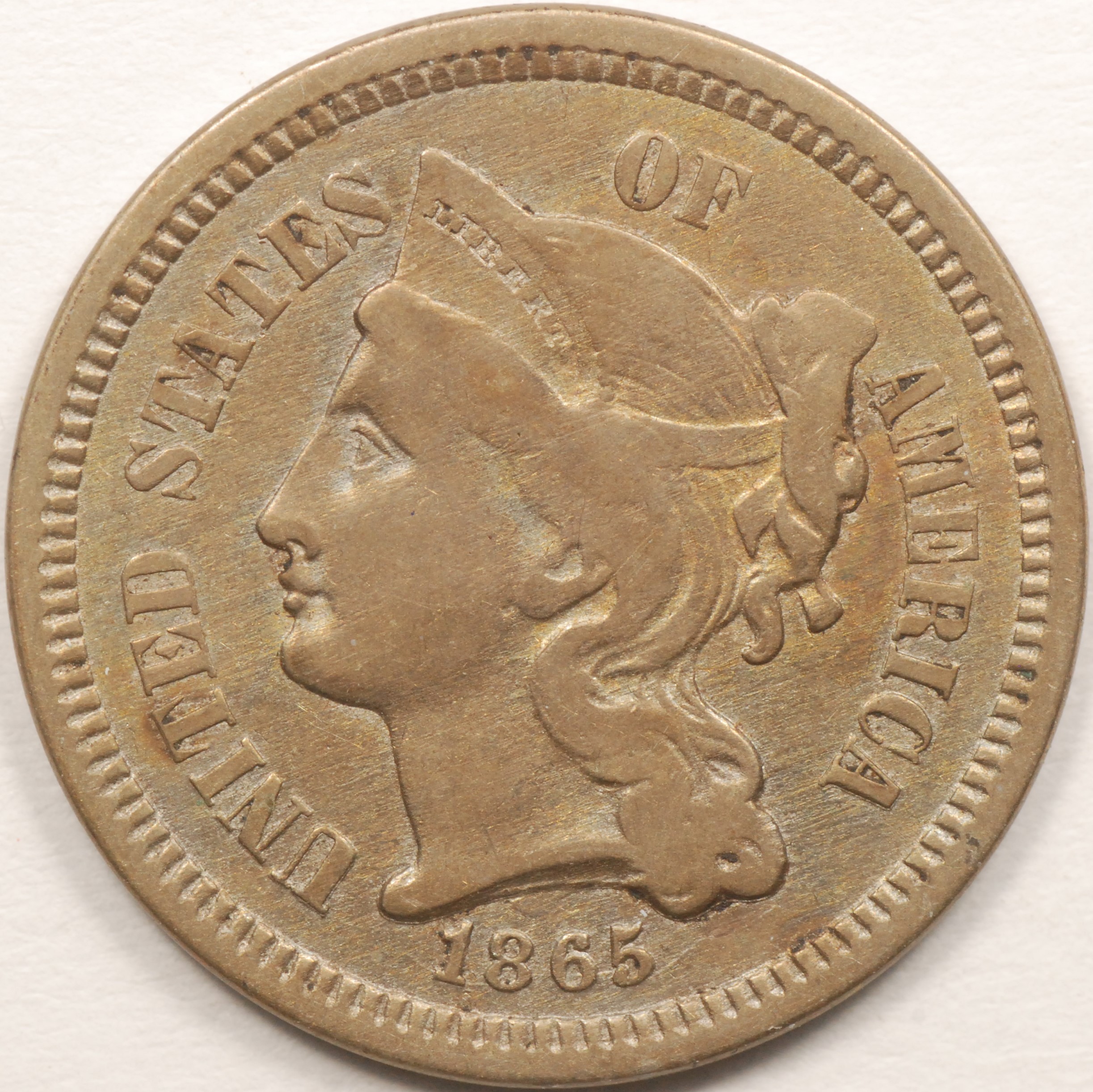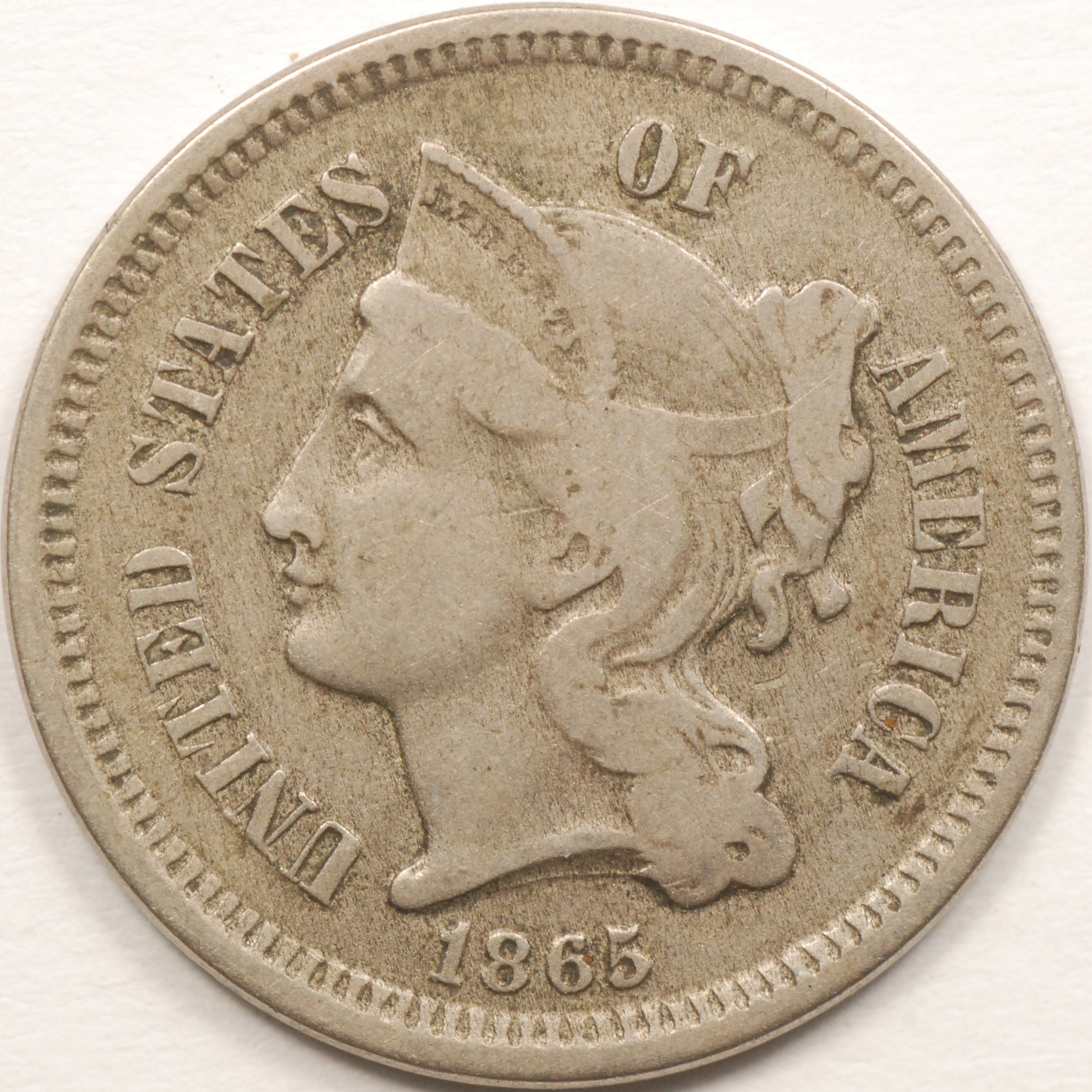| 57217 R | 1865 | Copper-Nickel Three Cents | Very Fine | $28.00 | |||