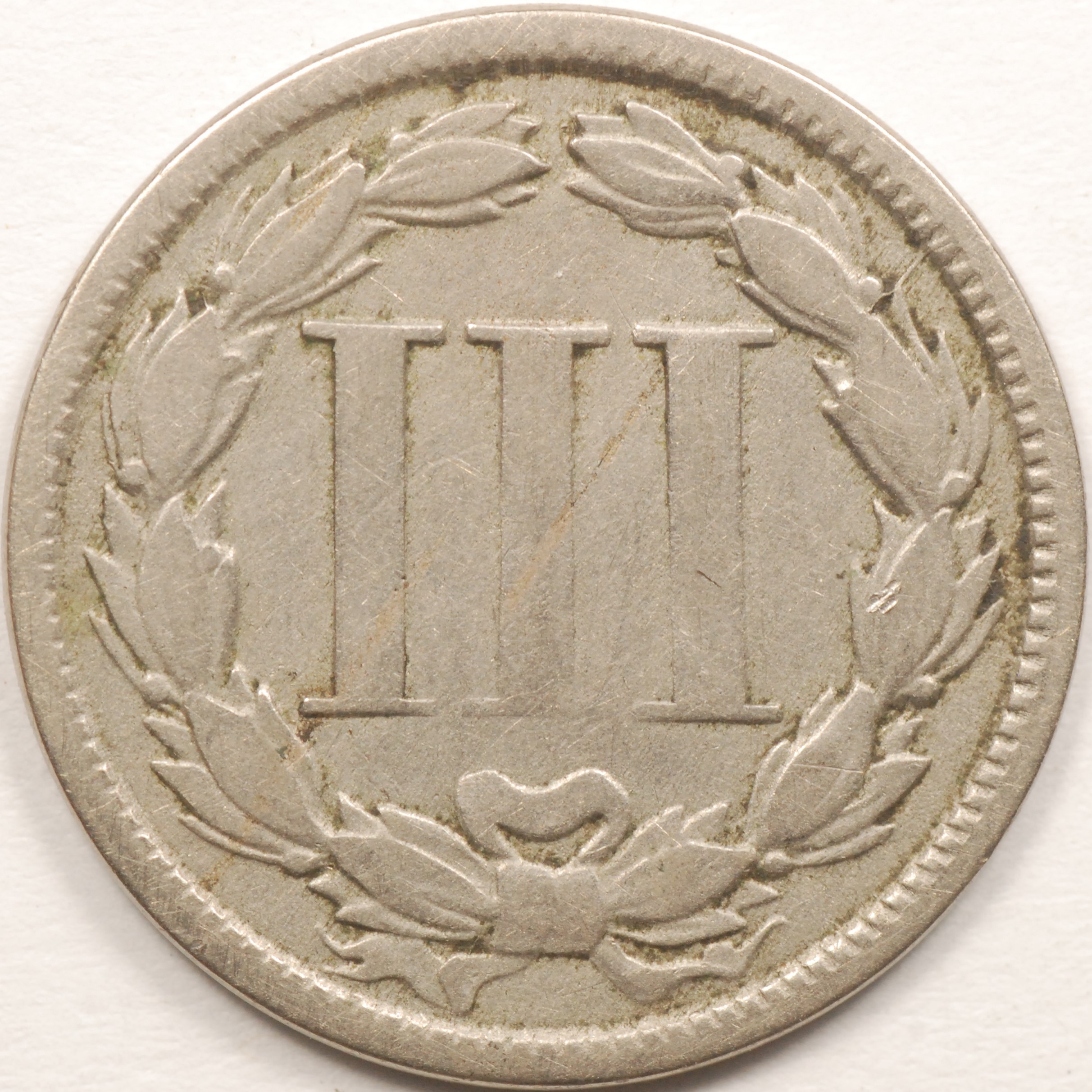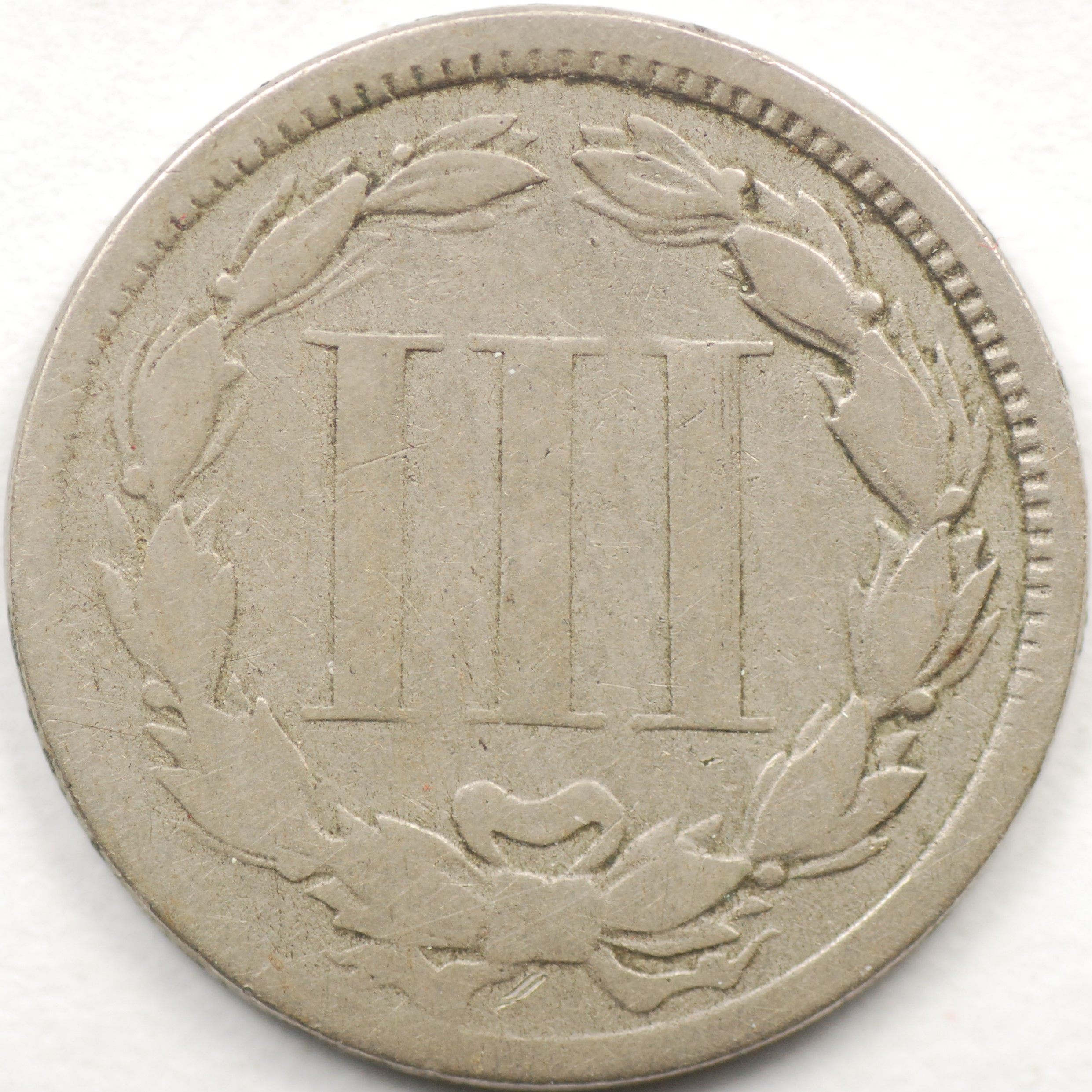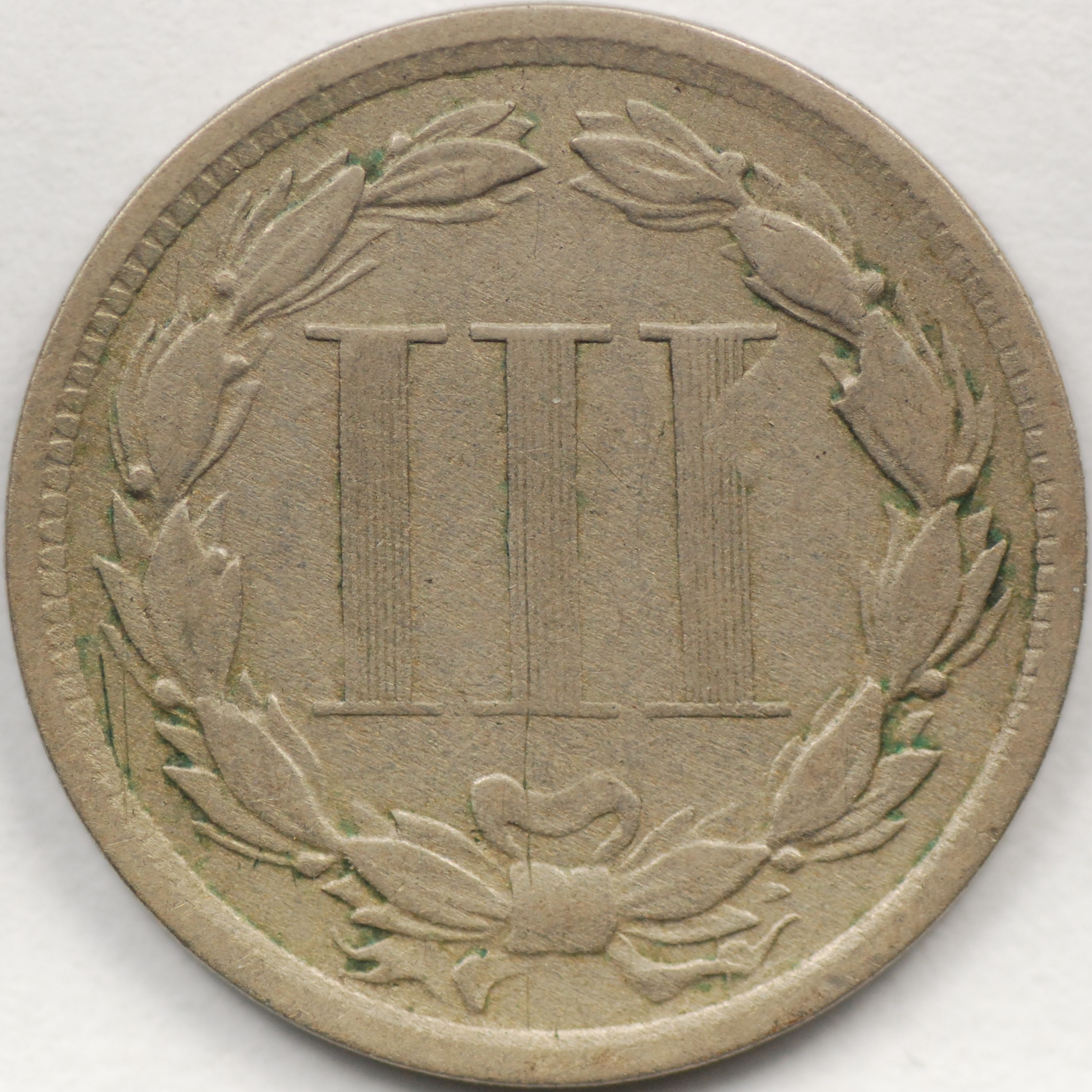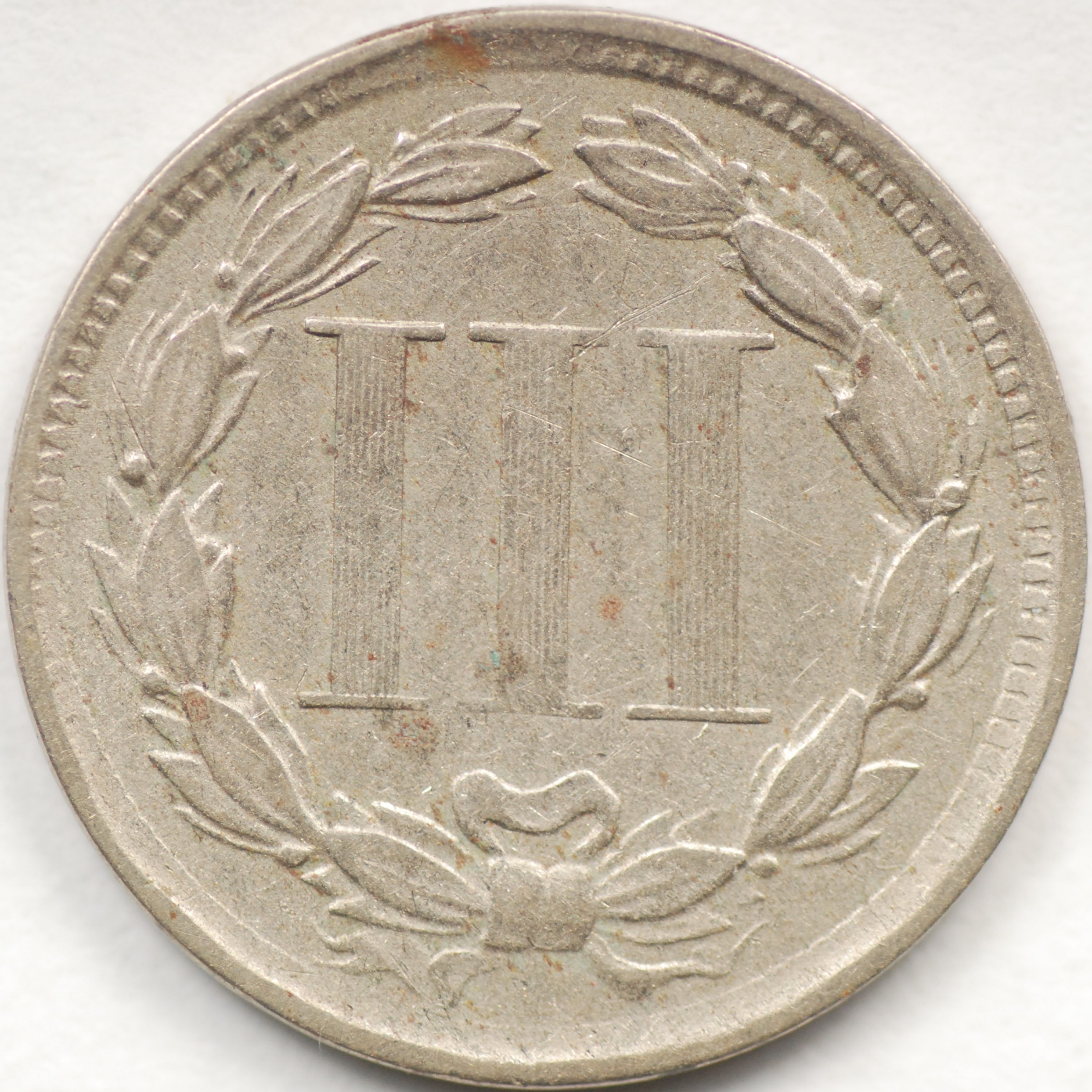 | 57217 R | 1865 | Copper-Nickel Three Cents | Very Fine | $28.00 | |||