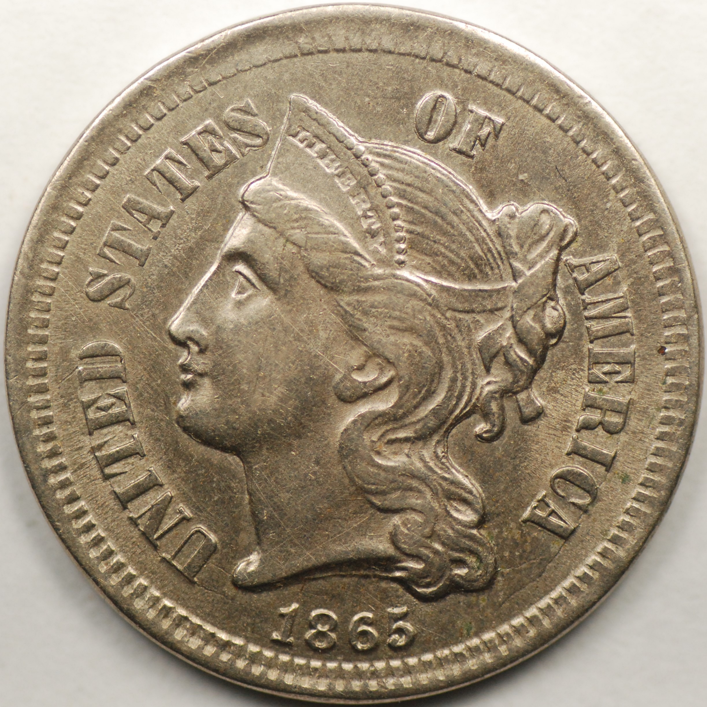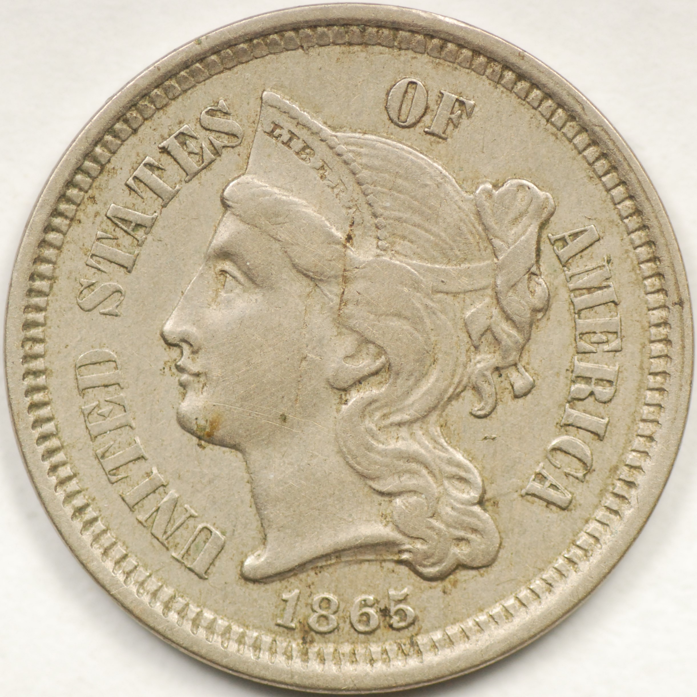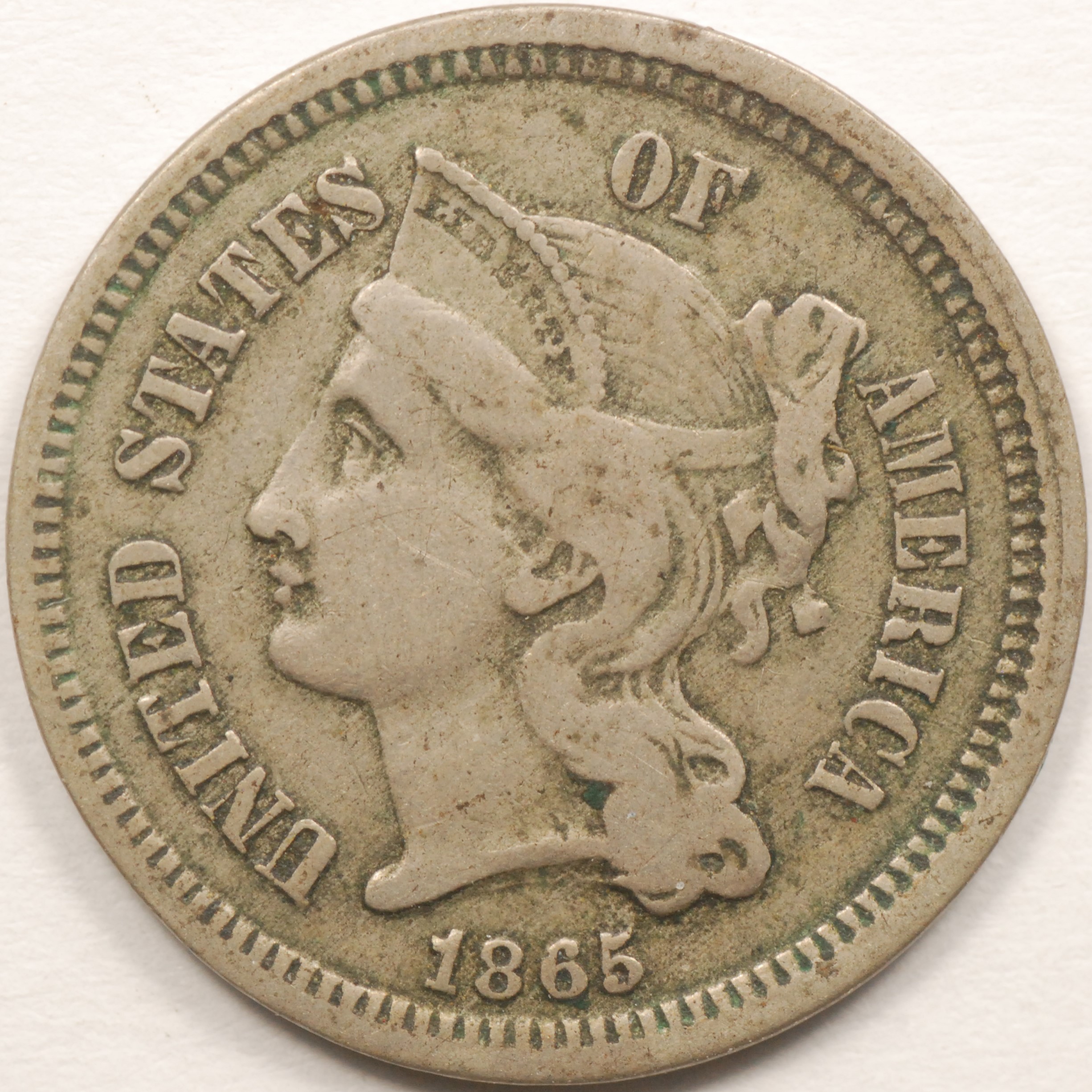 | 10 R | 1865 | Copper-Nickel Three Cents | Very Fine | $28.00 | |||