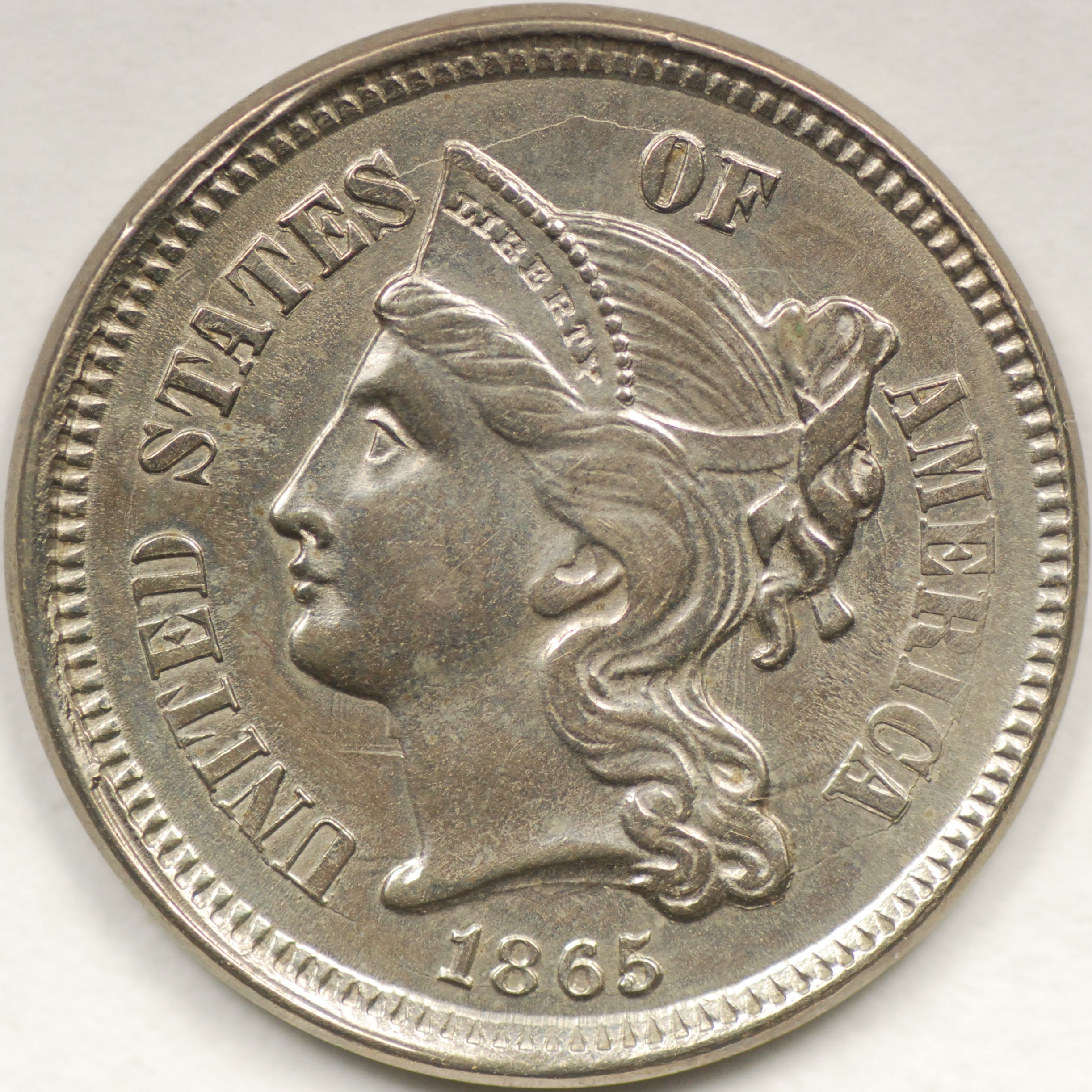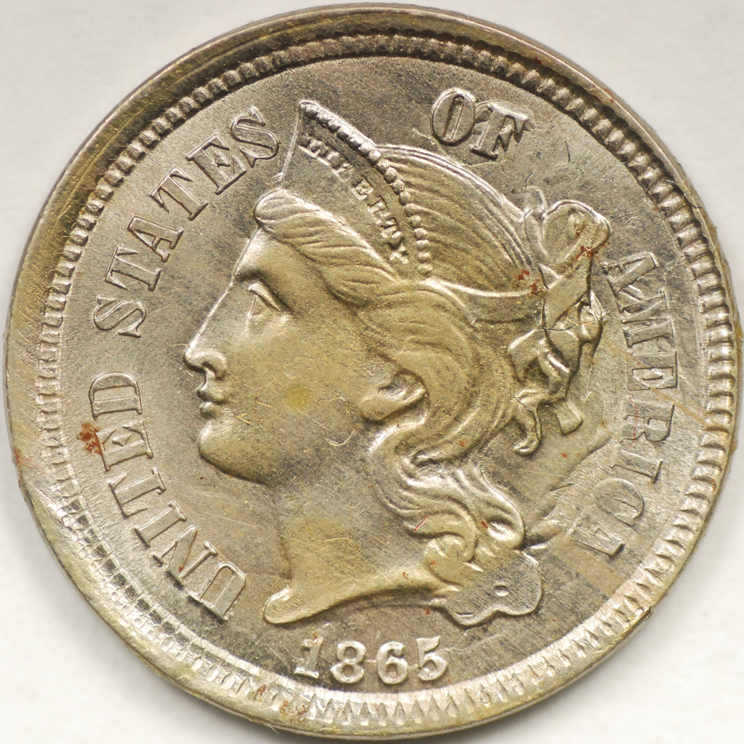 | 86 R | 1865 | Copper-Nickel Three Cents | About Uncirculated | $70.00 | |||