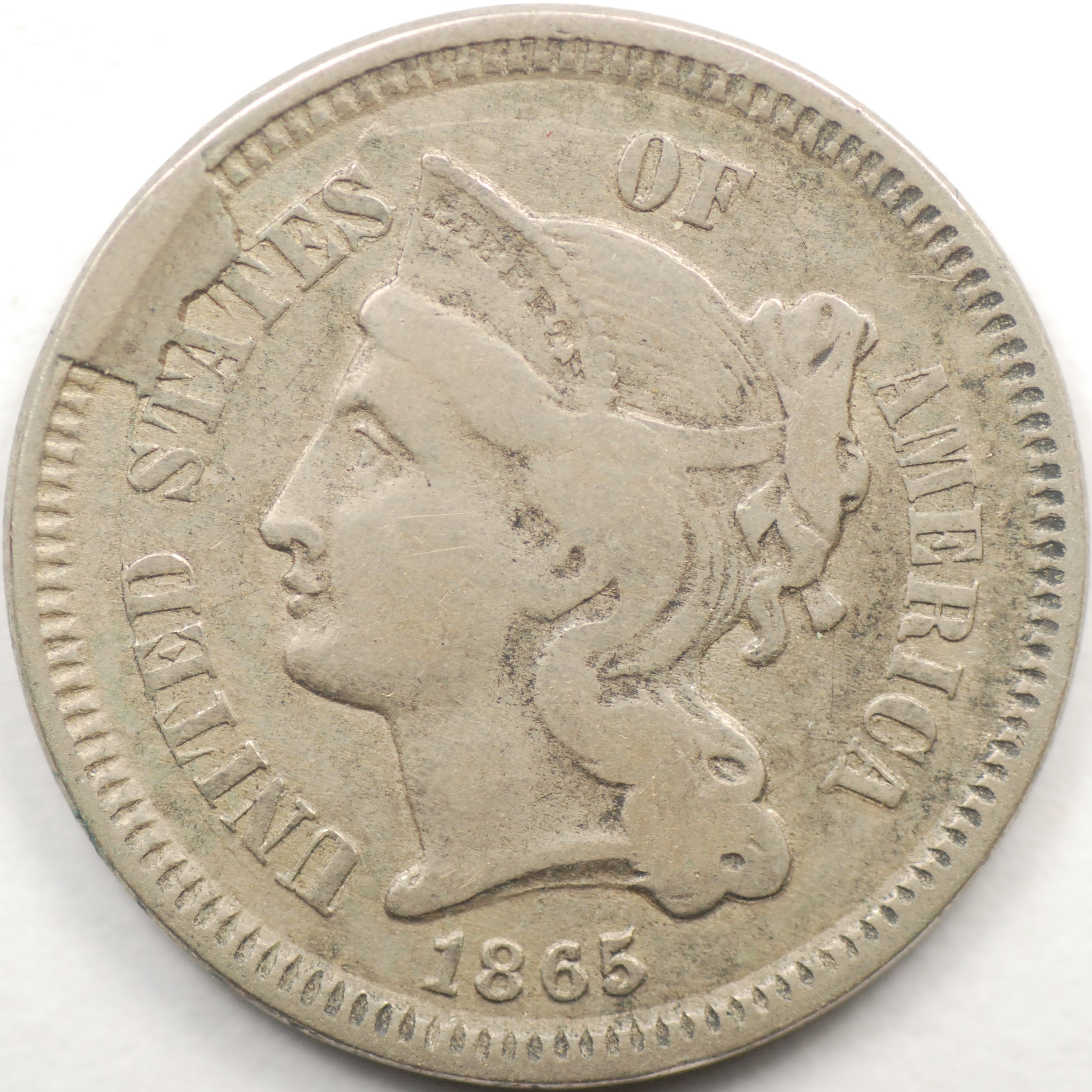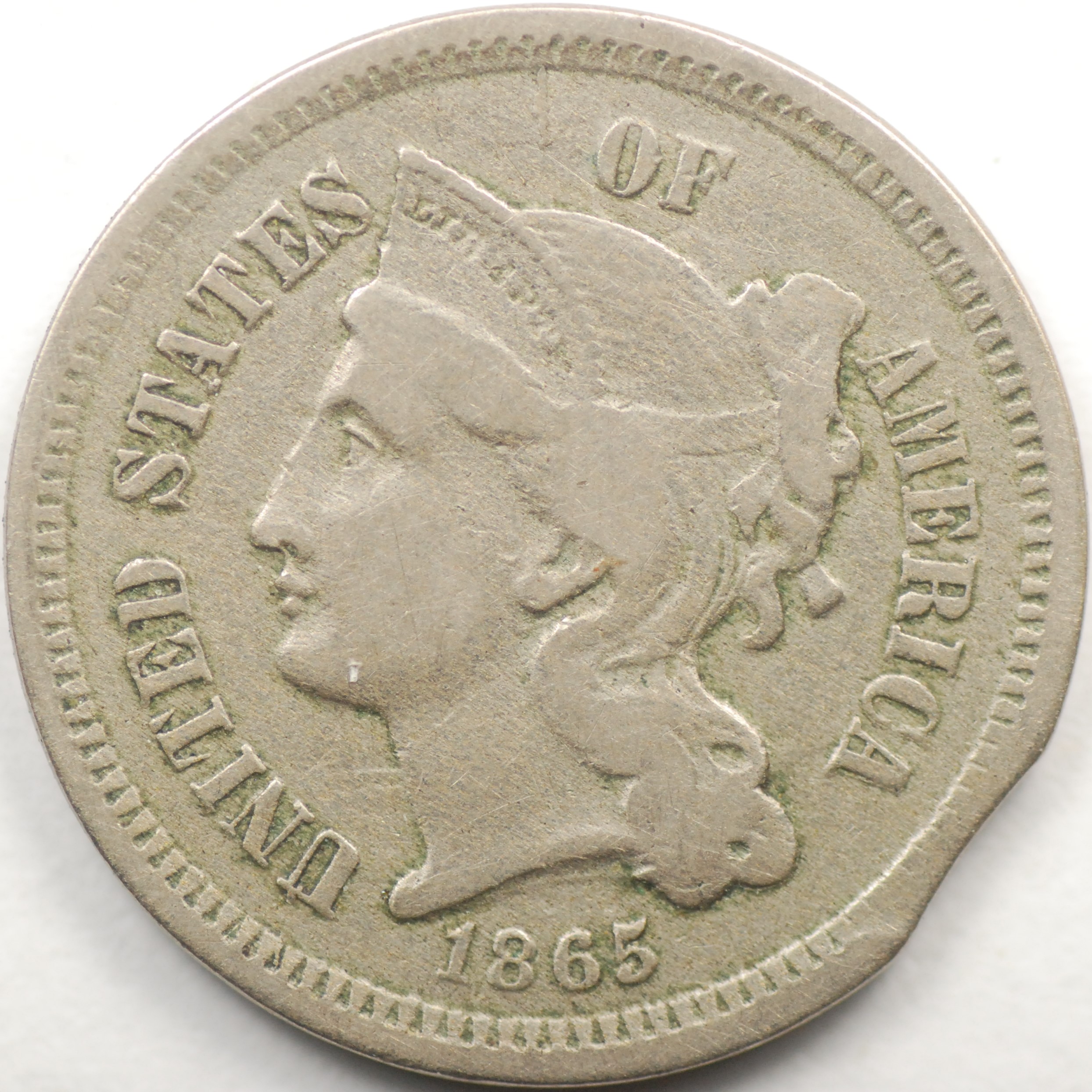 | 68666 R | 1865 | Copper-Nickel Three Cents | Misplaced Date, "5" in Denticles, FS-002, URS-7 | Very Good | $40.00 | ||