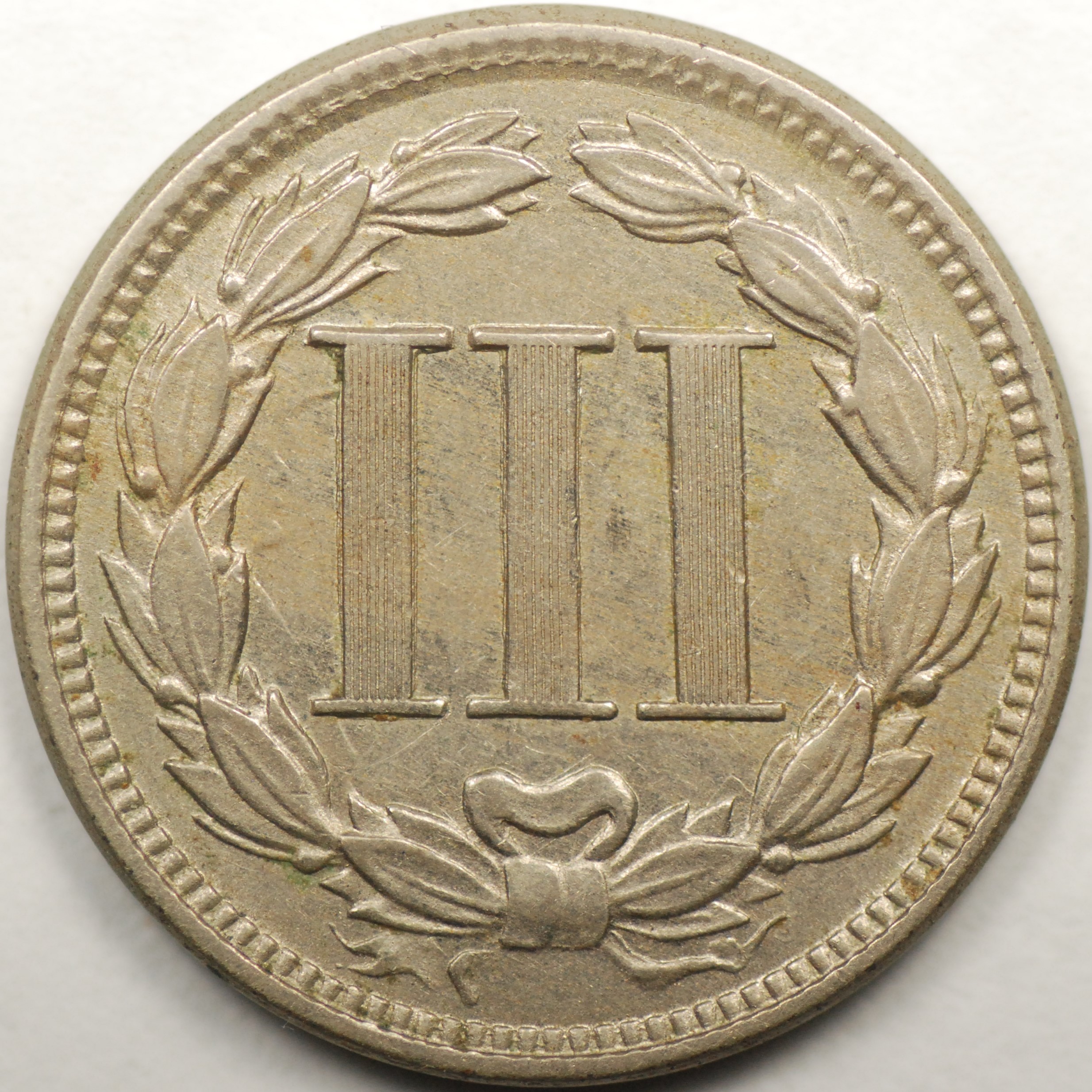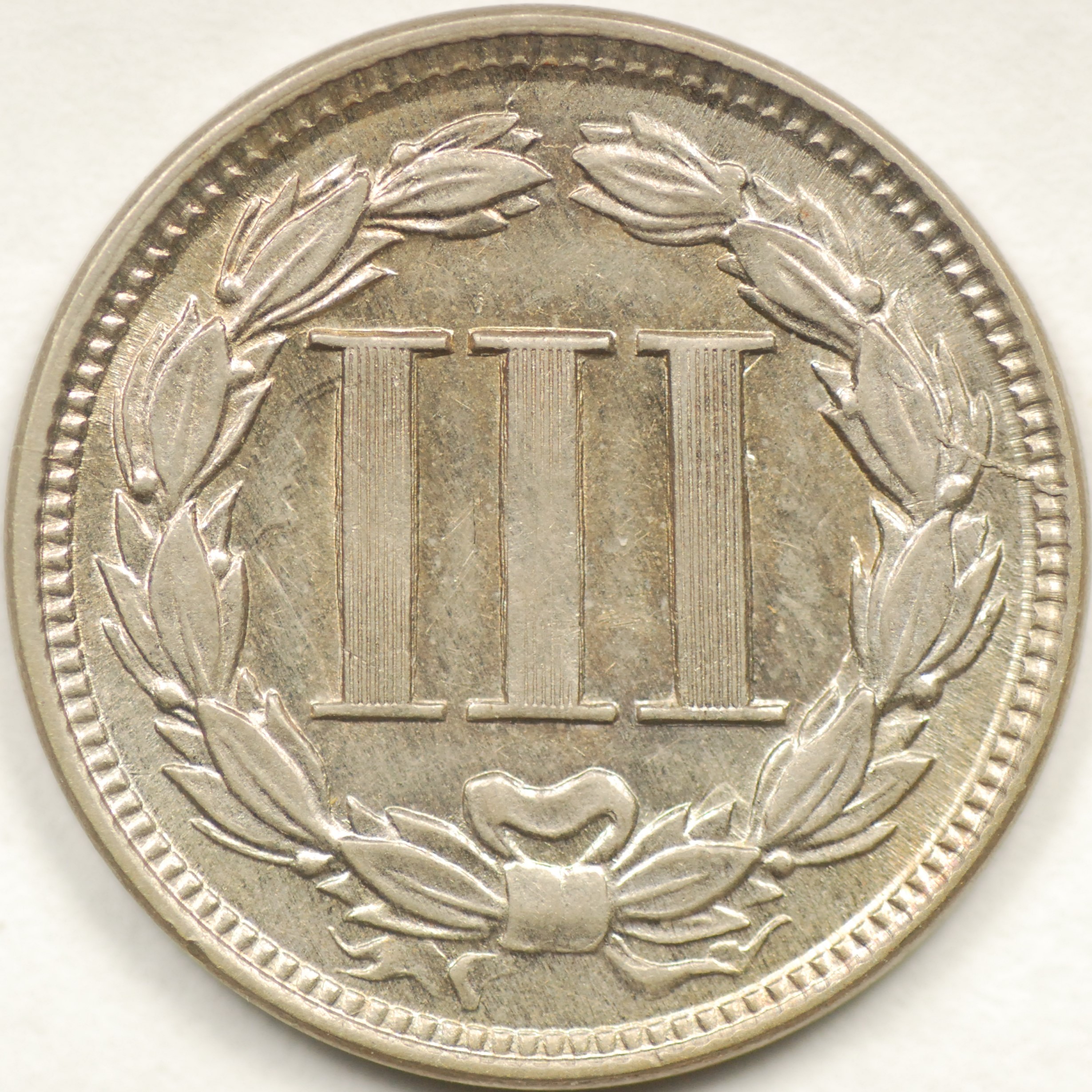 | 76811 R | 1865 | Copper-Nickel Three Cents | Extremely Fine | $46.00 | |||