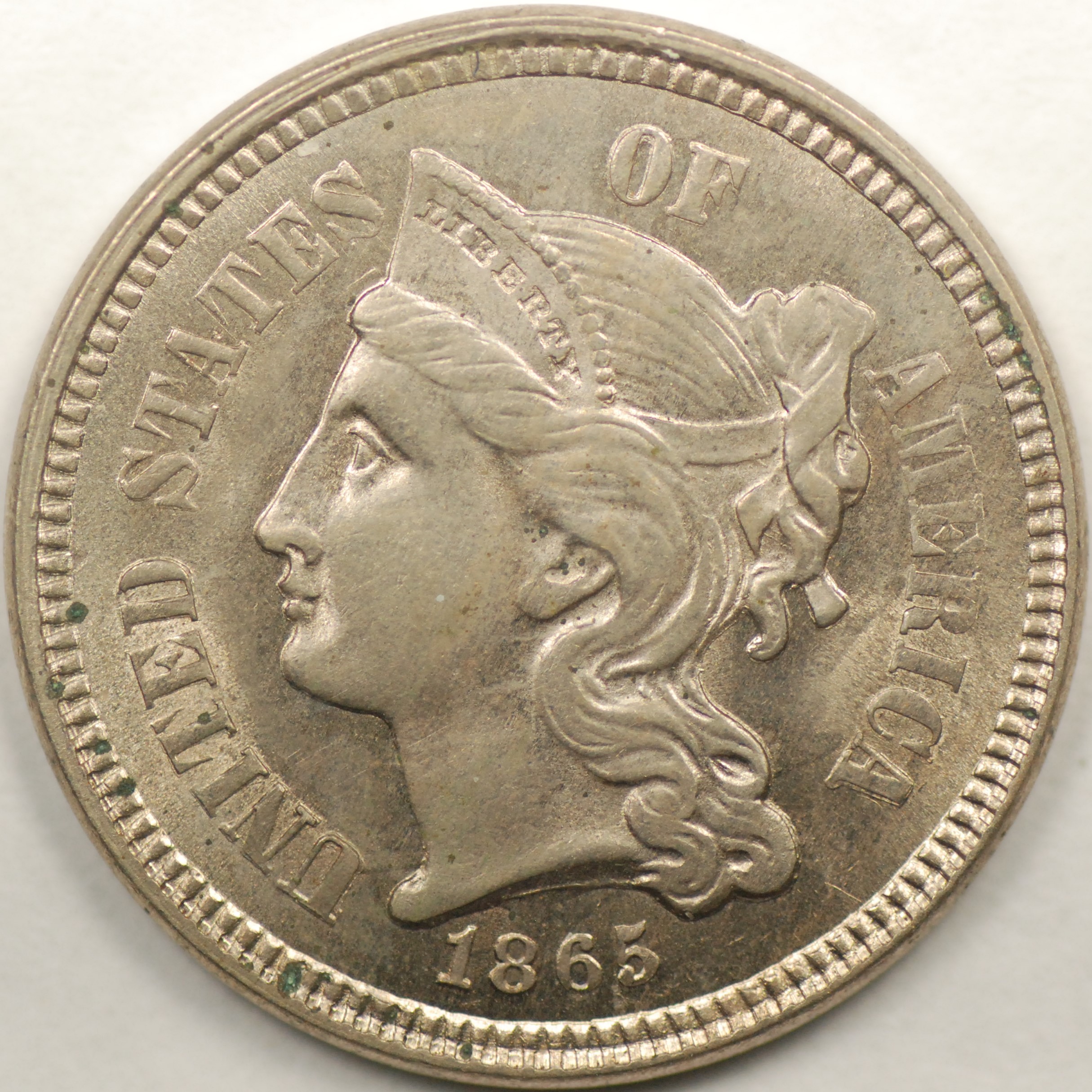 | 65946 R | 1865 | Copper-Nickel Three Cents | About Uncirculated | $70.00 | |||